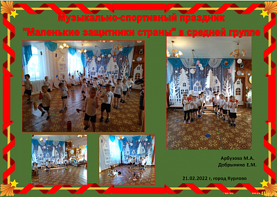 Музыкально-спортивный праздник "Маленький мой защитник" в средней группе