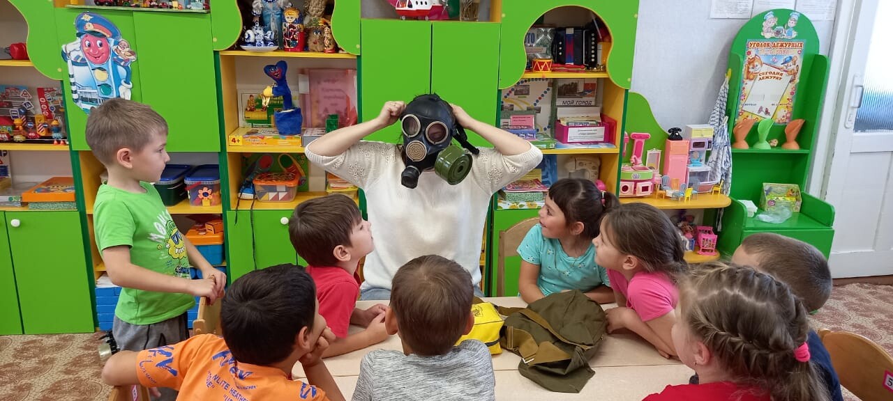 В рамках Дня гражданской обороны в детском саду во вторых младших, средней, старшей и логопедических группах для ознакомления воспитанников с правилами поведения в чрезвычайных ситуациях педагоги ДОУ провели серию занятий по безопасному поведению детей в различных ситуациях. Проведены практические занятия с воспитанниками по использованию противогаза и других различных средств защиты при возникновении чрезвычайных ситуаций.