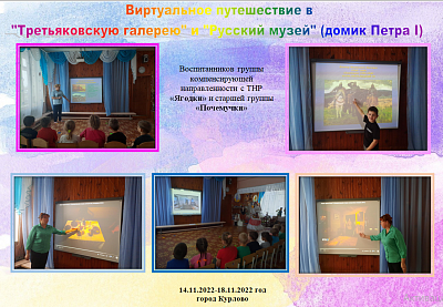 Воспитанники группы компенсирующей направленности с ТНР "Ягодки" и старшей группы "Почемучки" посетили "Третьяковскую галерею" и "Русский музей" (домик Петра 1)