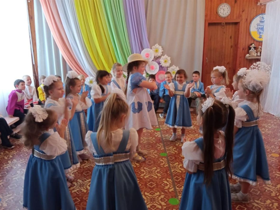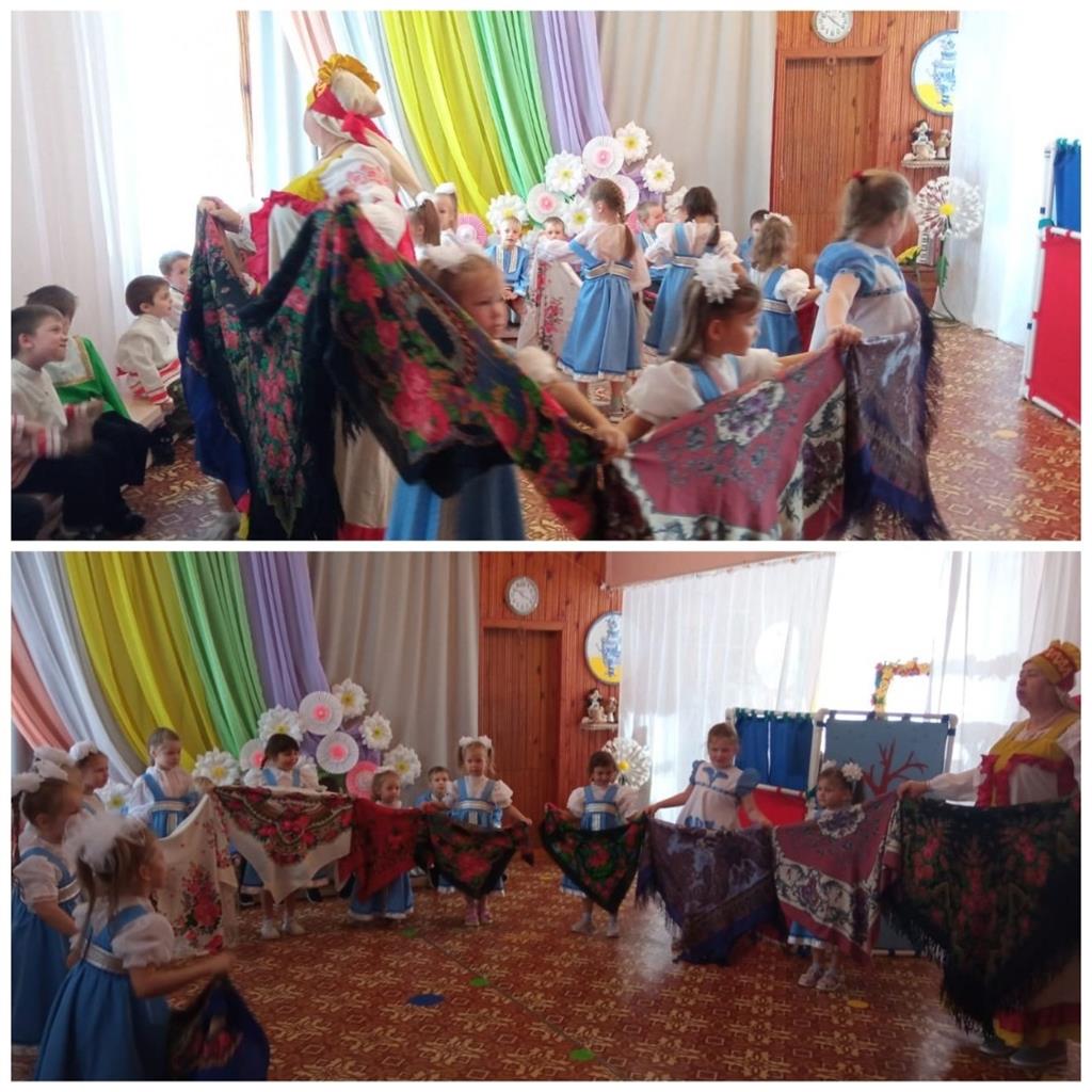 В празднике приняли участие воспитанники старшей группы "Апельсинки" и группы компенсирующей направленности с ТНР "Ягодки ". Под весёлую, задорную музыку вошли детки в ярких, цветных русских народных костюмах. Их встретила Хозяюшка. Она поведала ребятам о традициях и обычаях этого праздника. А затем, пришли разудалые коробейники, которые на перебой выкривали свои товары . И пошла торговля!