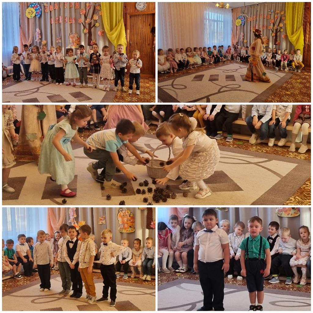 Детки показали умения читать стихи, отгадывать загадки, исполнять песни и танцы. К ребятам в гости приходила Белочка, и поиграла в игру "Собери шишки". Приходил в гости Ёжик, и поиграл в игру "Разбери яблоки".
