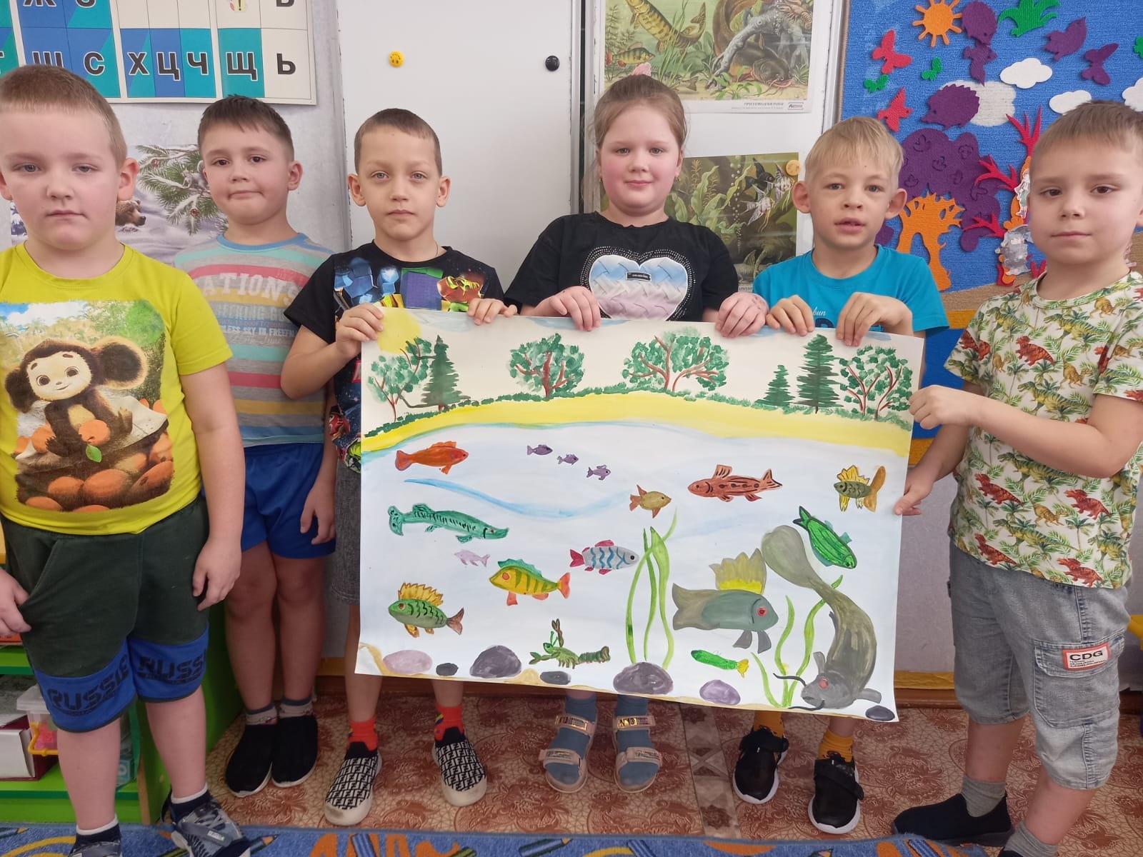 - Рисовали речных рыб.