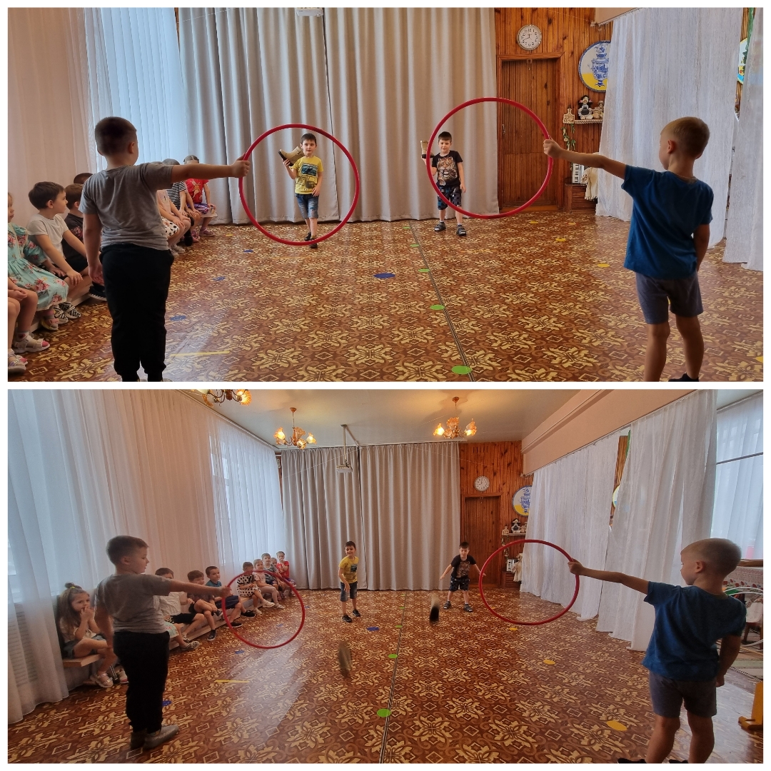 Детки поиграли в игры: "Кто дальше бросит валенок", "Толкание валенка", "Метание валенка", "Передай валенок".