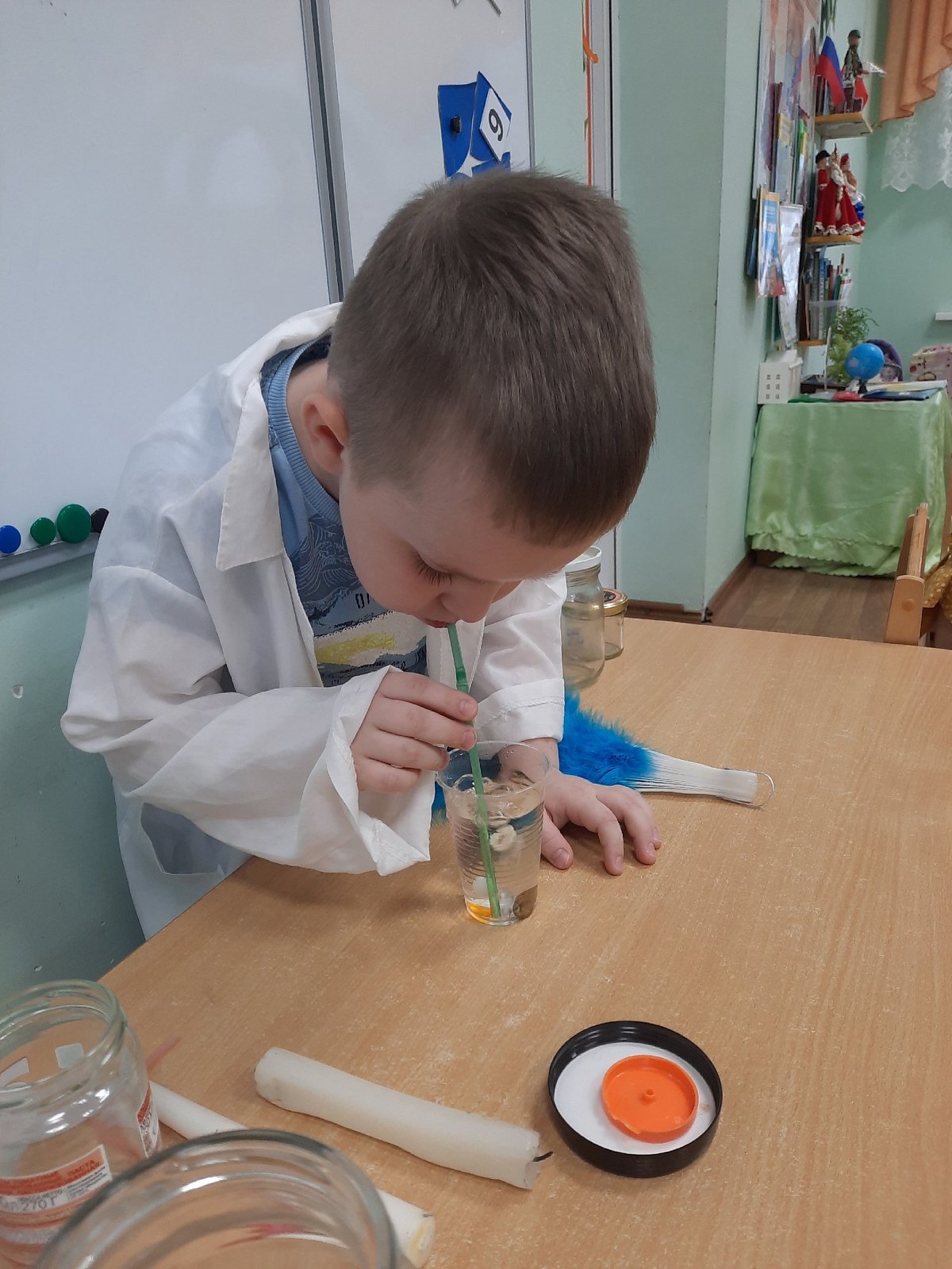 Интересный опыт со стаканчиком с водой и трубочкой наглядно показал, как образуются не только воздушные пузыри, но и как с помощью воздуха заставить двигаться бусины.