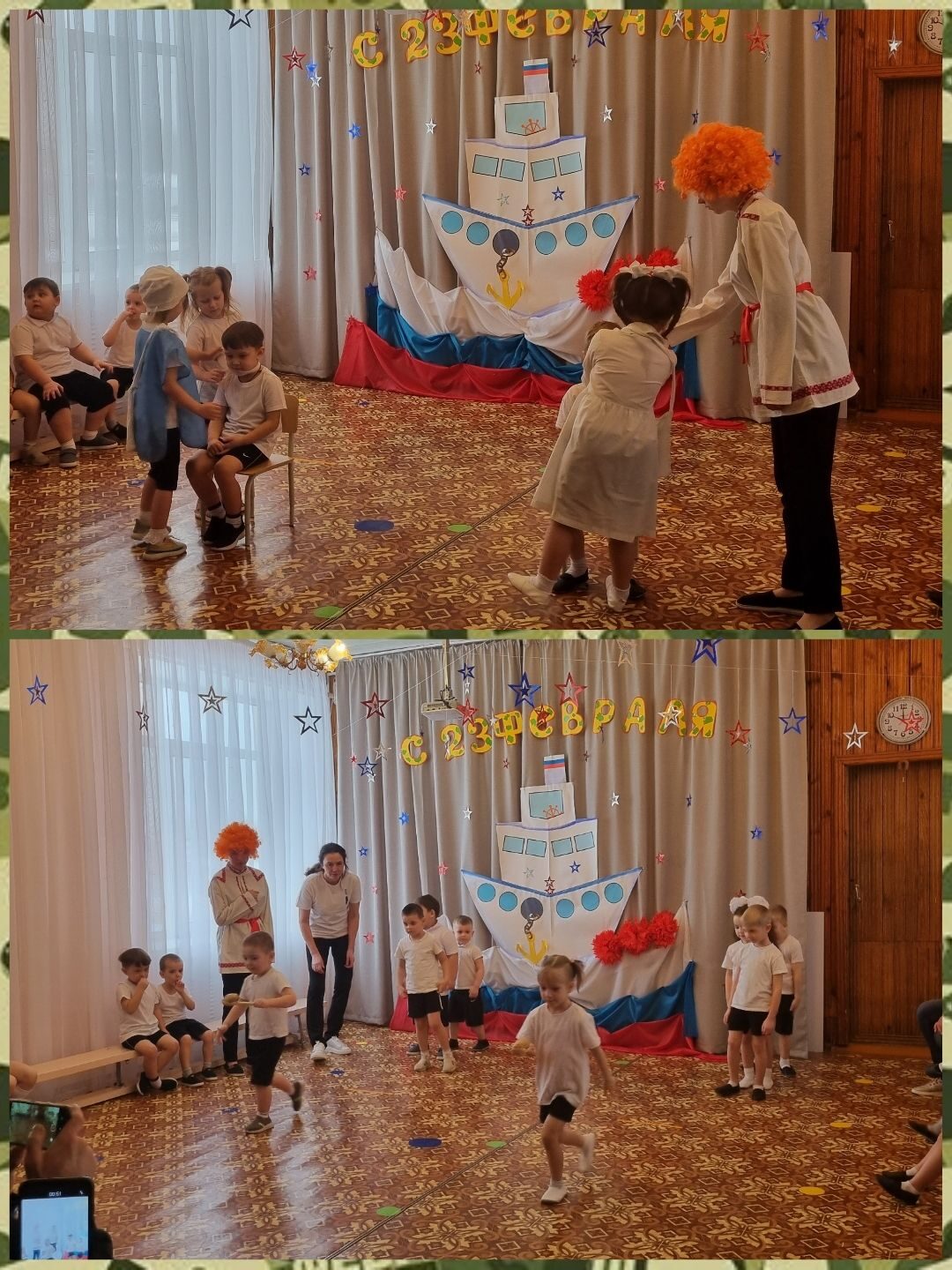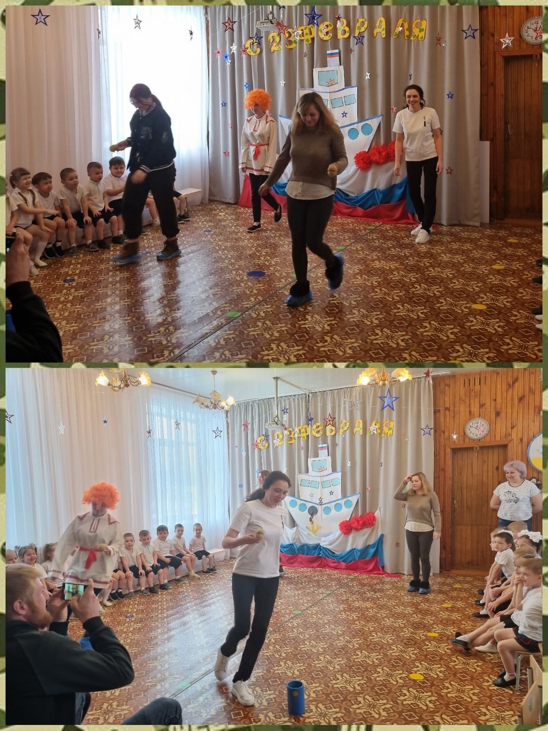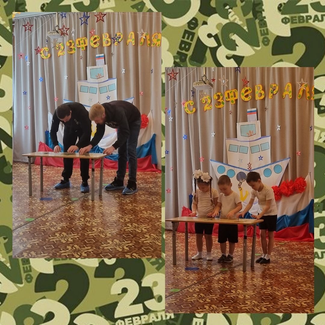 Соревновались в играх - эстафетах друг с другом, и, конечно же, с любимыми папами: "Собери военную технику", "Кавалеристы"; "Макароны по-флотски","Перенеси картошку", "Медсёстры".