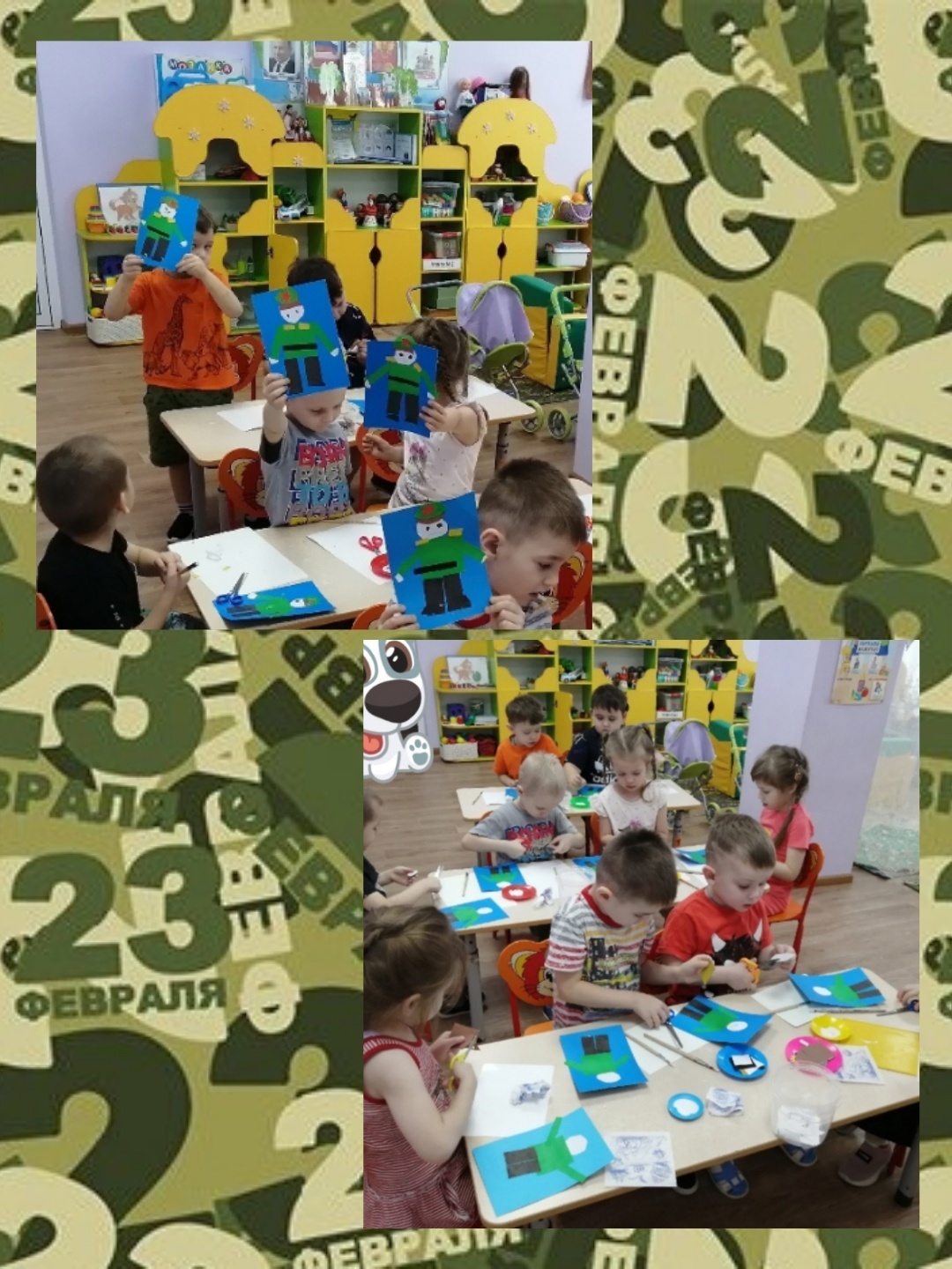Изготовили открытки для любимых пап и дедушек в технике аппликация "Солдат".
