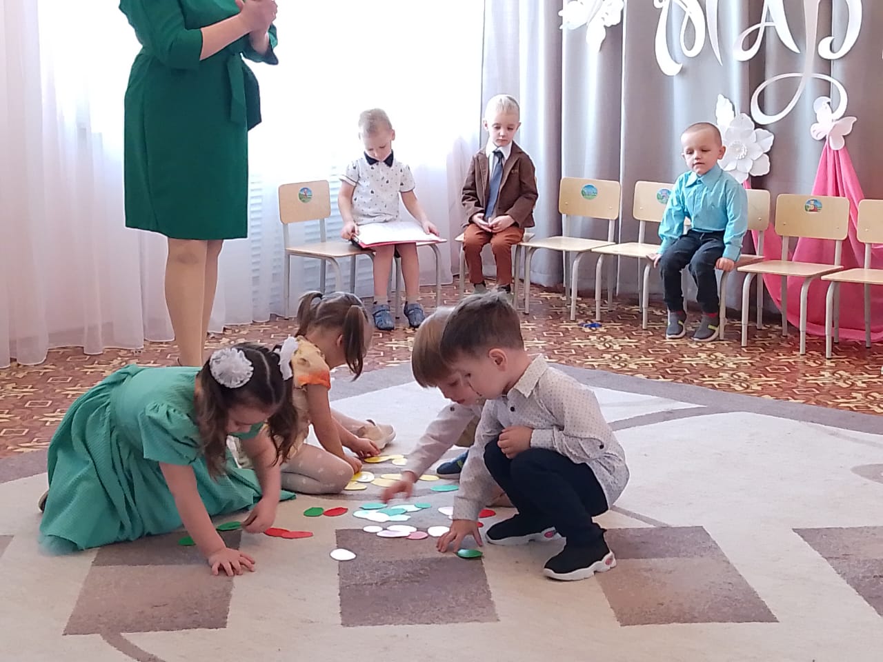 Поиграли в весёлые игры: "Собери цветочки" и "Озорные клубочки".