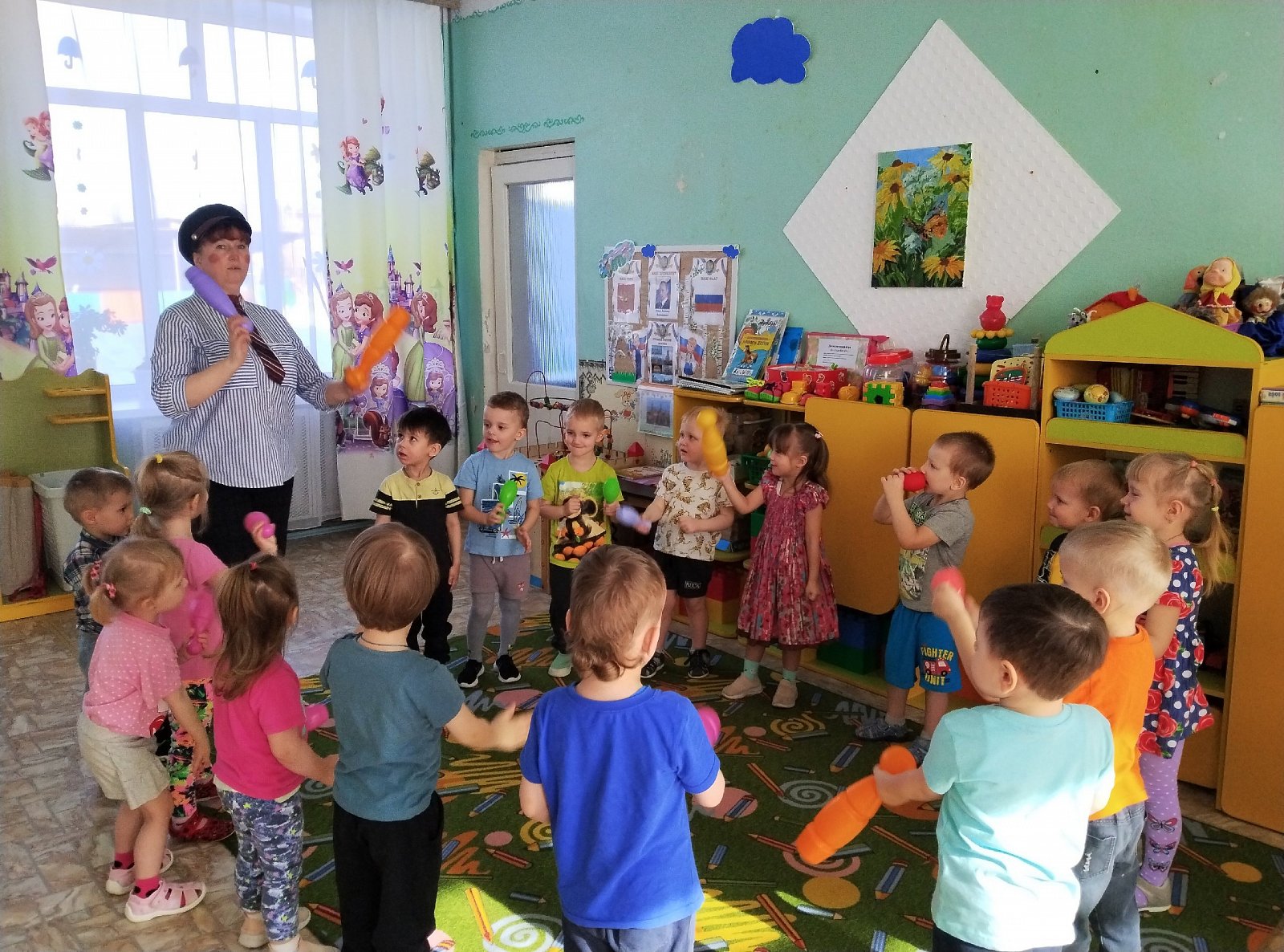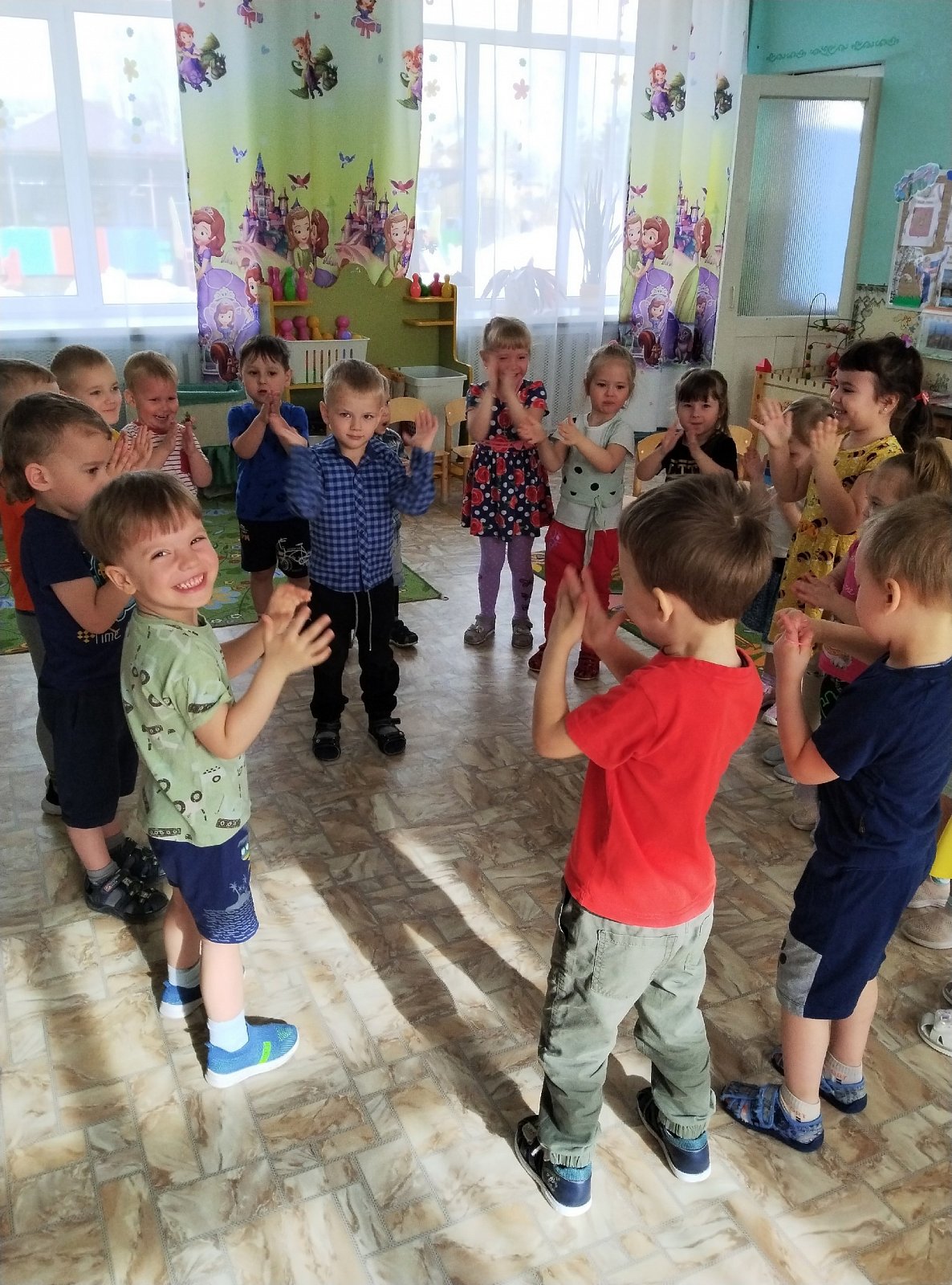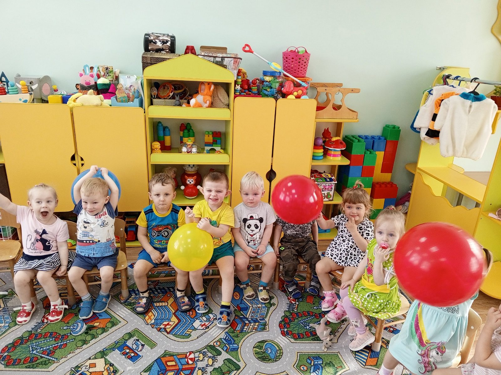 Малыши играли и веселились с воздушными шариками и мыльными пузырями. Танцевали под весёлую музыку.