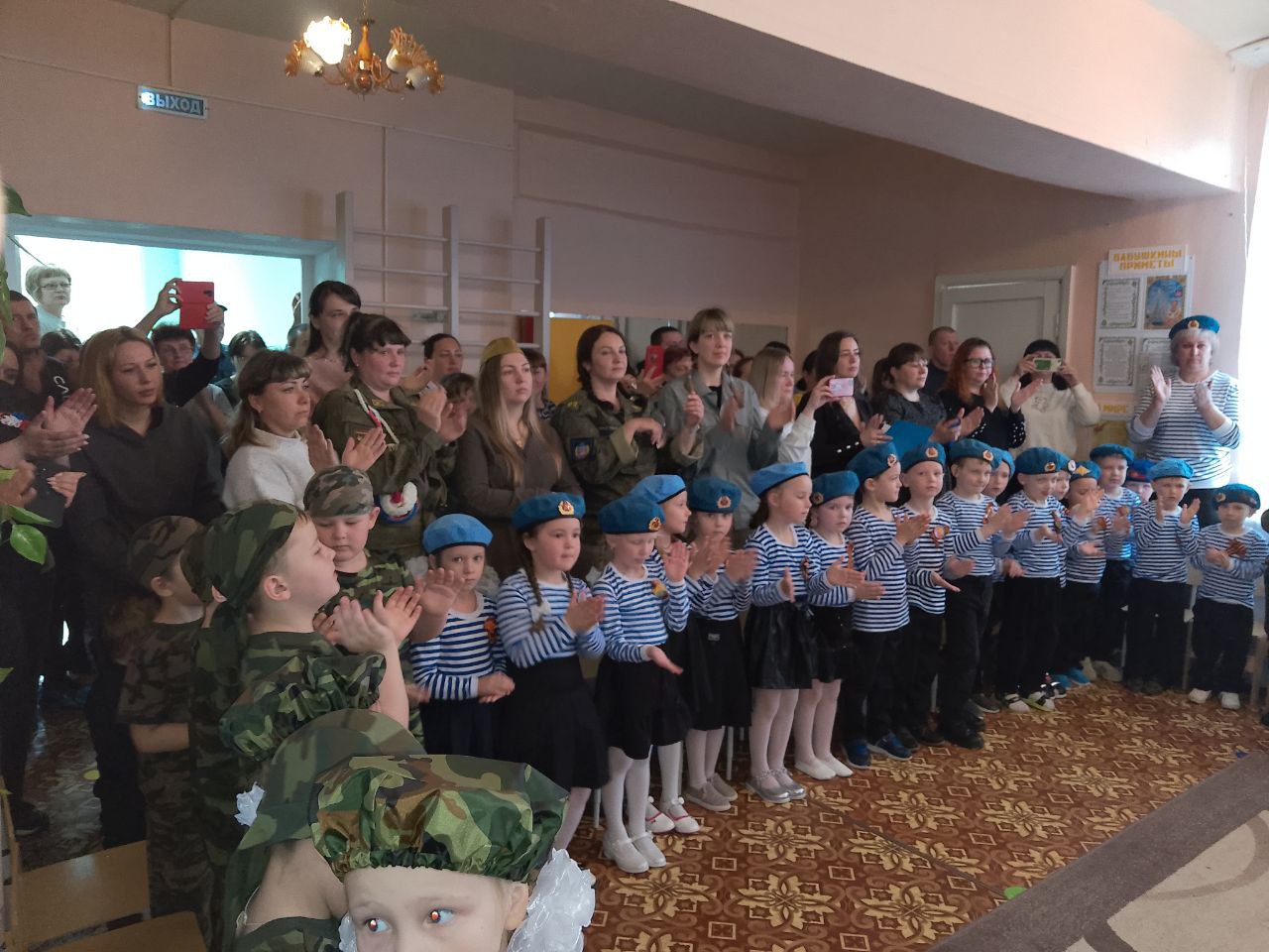 Каждый род войск представил своё выступление. Дети читали стихи, пели песни и исполняли танцевальные номера. Незабываемыми стали сценка "На привале", Дети войны", в исполнении детей. Оригинальные танцы: "А закаты алые", "Никто кроме нас", " Спецназ", танец-композиция "Моряки".