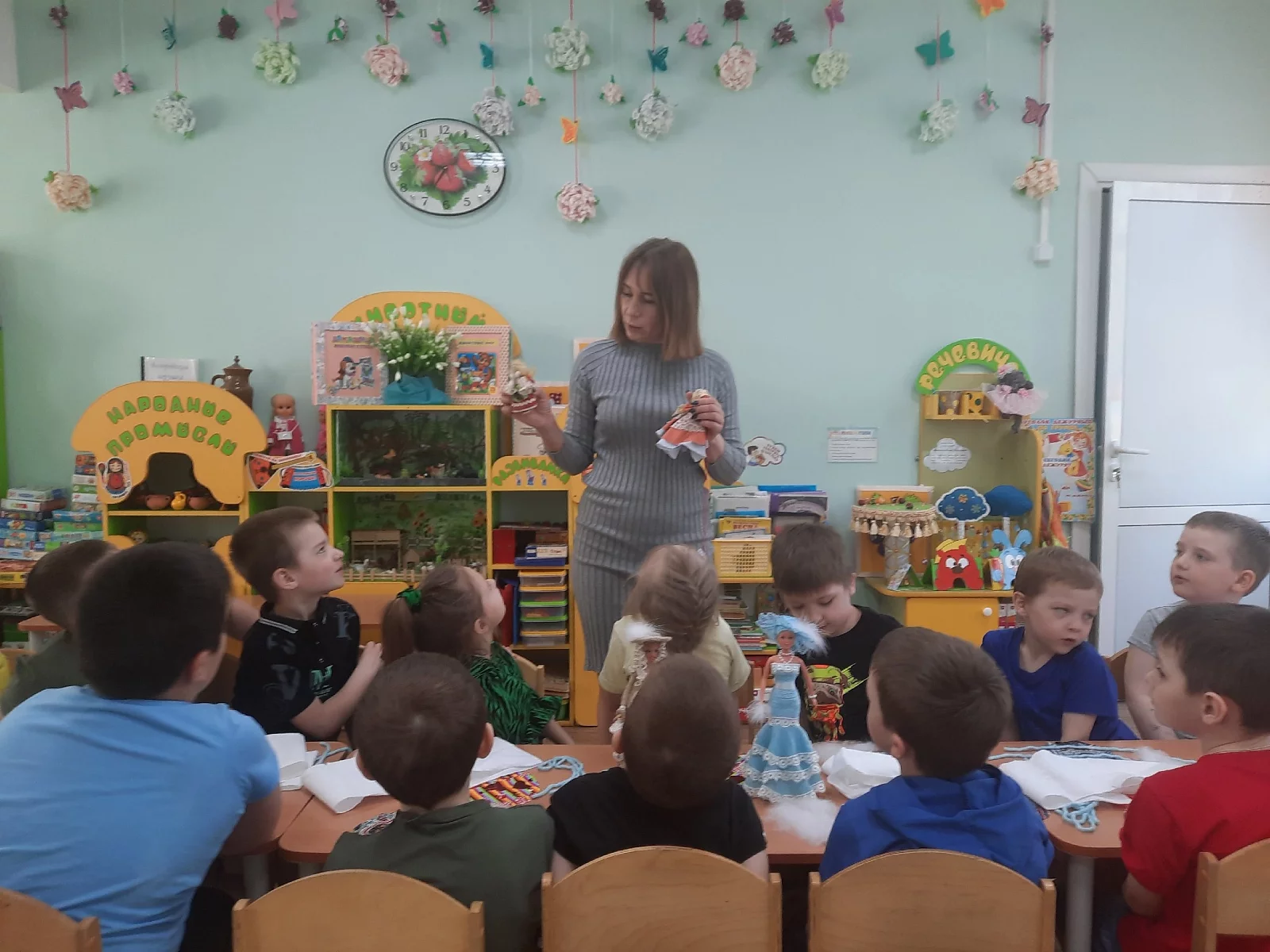 С целью приобщения воспитанников к русской народной культуре в старшей группе "Апельсинки" прошёл мастер класс - "Изготовление тряпичной куклы " Зайчик на пальчик".