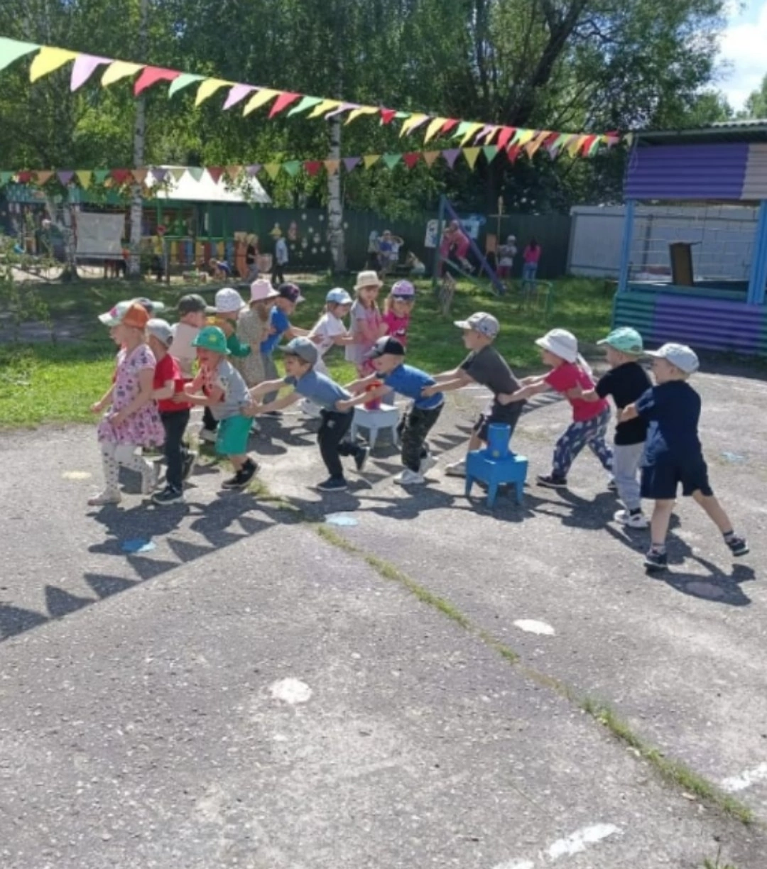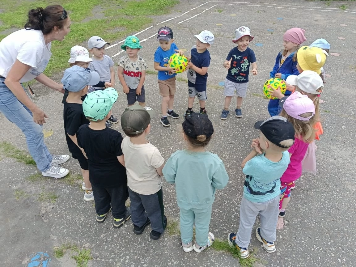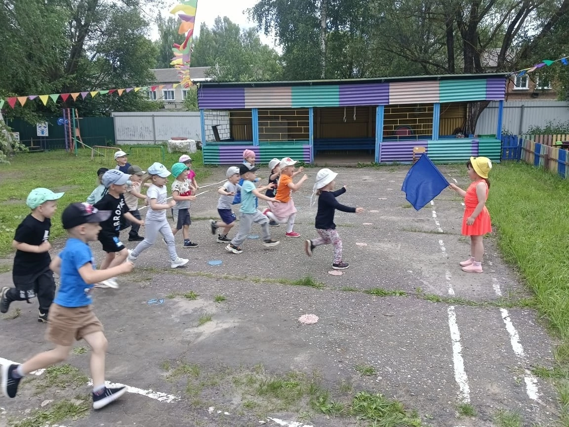 дети играли в подвижные игры «По ровненькой дорожке», «Добеги до флажка», «Гонка мячей», «Ровным кругом», участвовали в командном соревновании «Поезд».