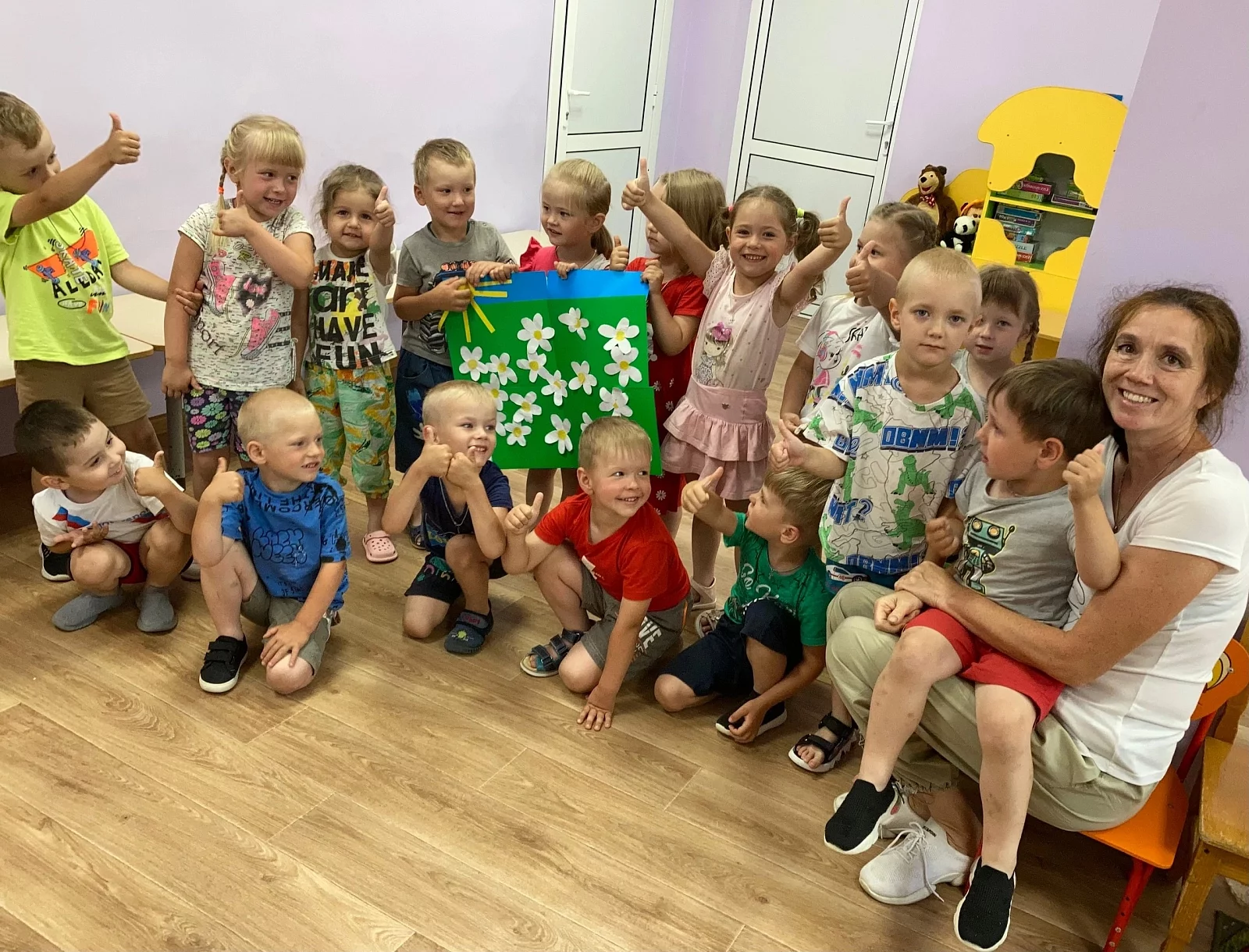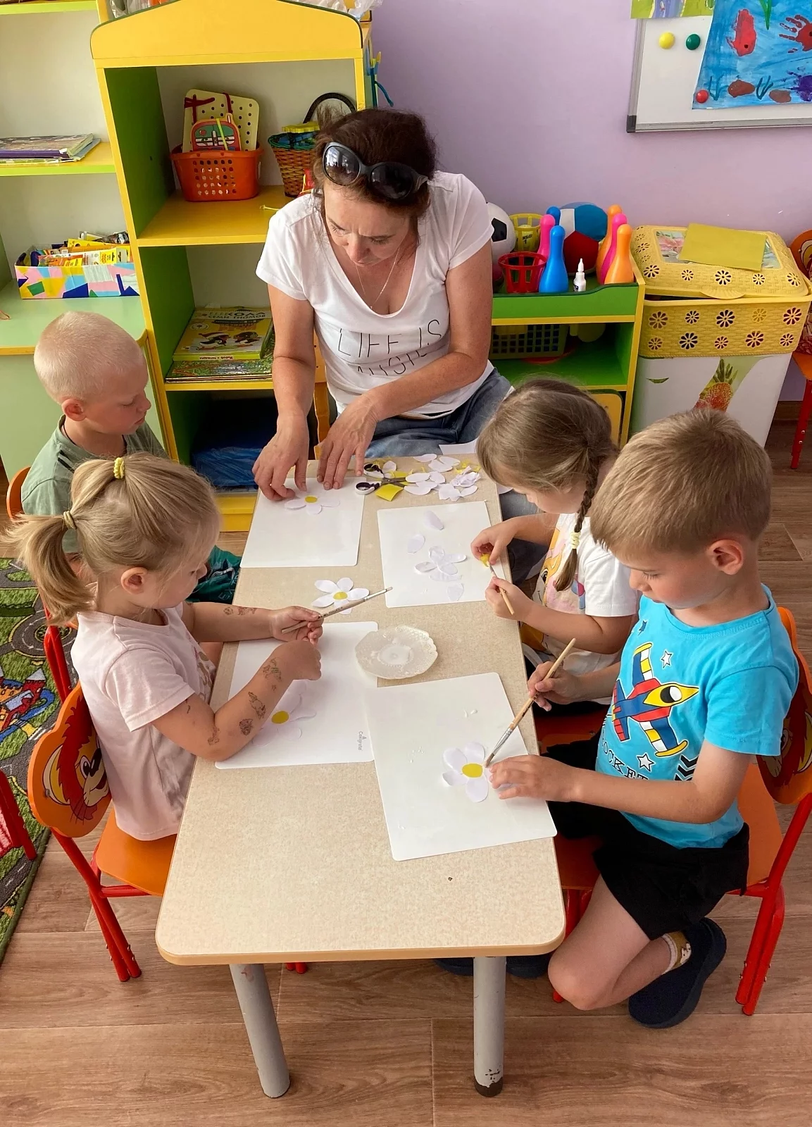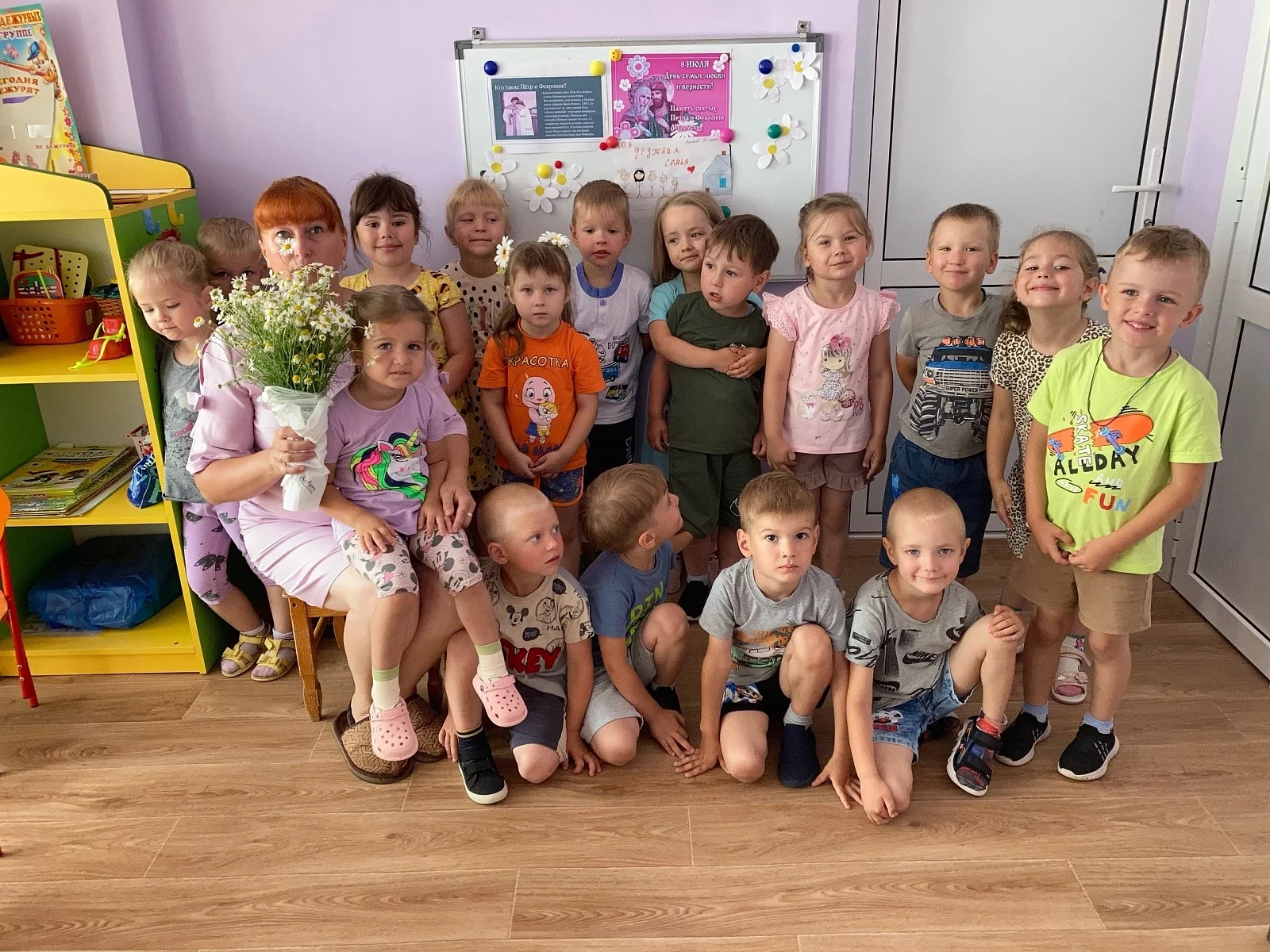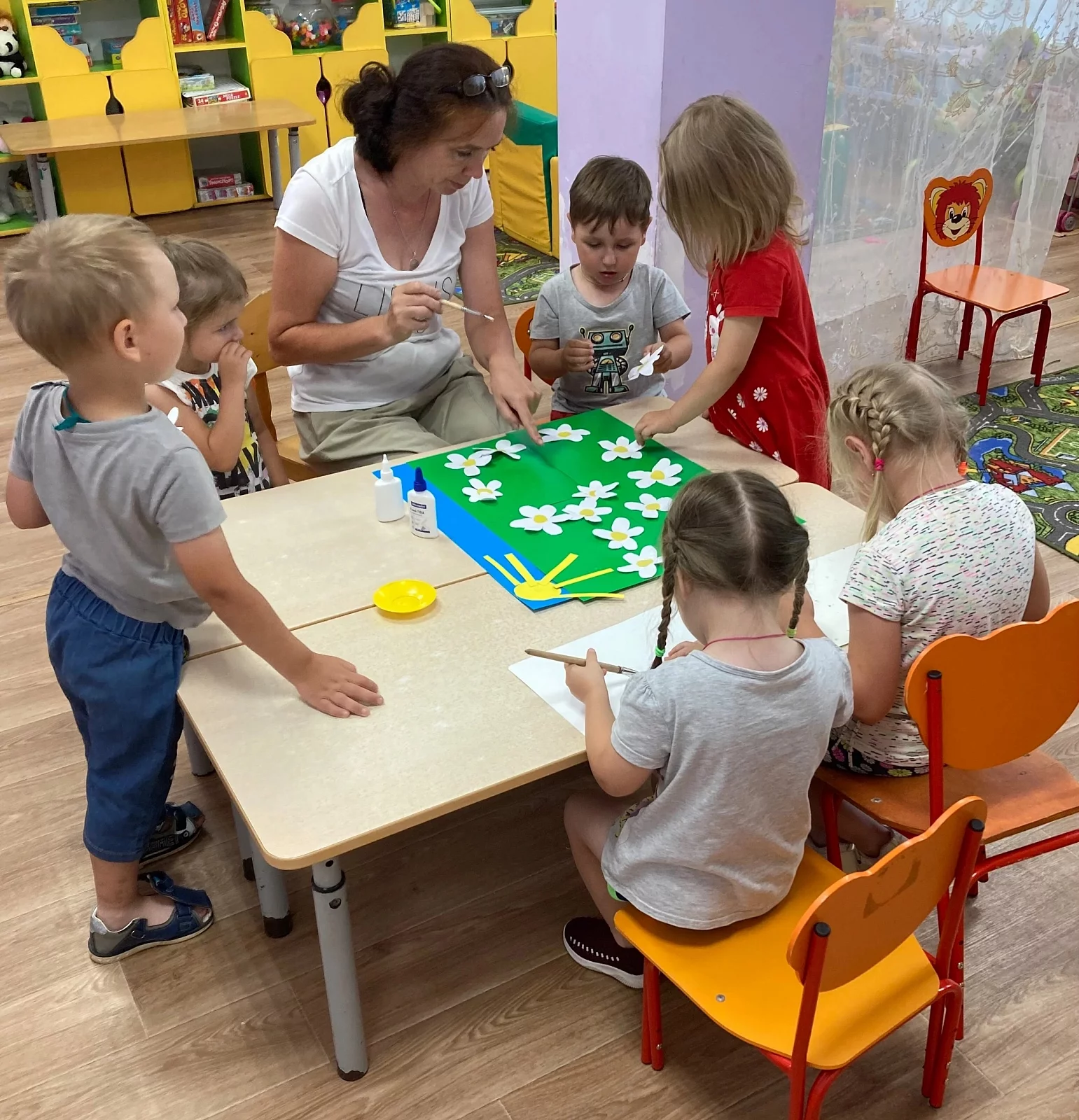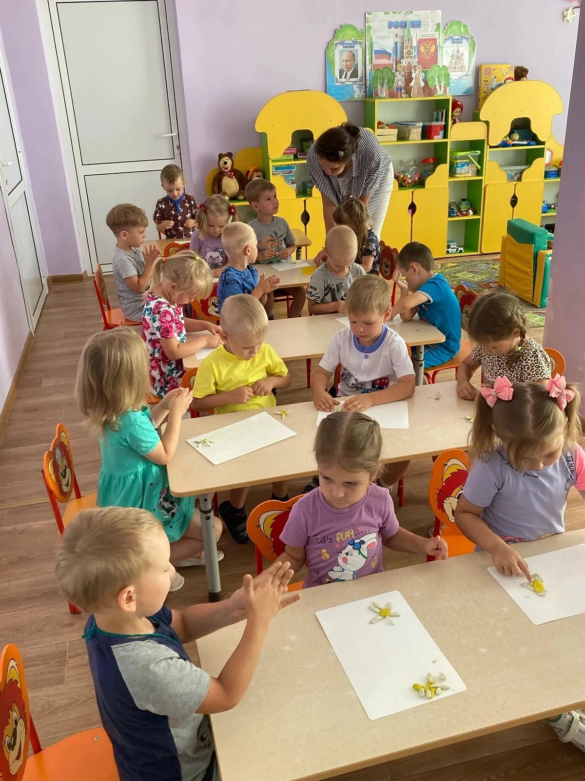 В предверии праздника «День семьи, любви и верности» воспитанники лепили ромашку и изготовляли плакат «Ромашковое поле» – ребятки назвали его волшебным, ведь он подарит радость на всё оставшееся лето!