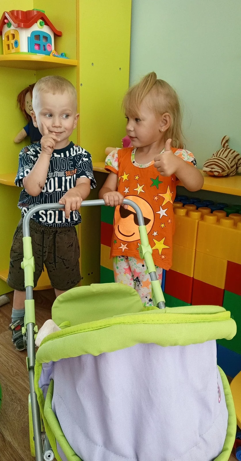 Играли в сюжетно-ролевые игры: «Дочки-Матери», «Моя семья», «Паровозик», «Уложим куклу Катю спать».