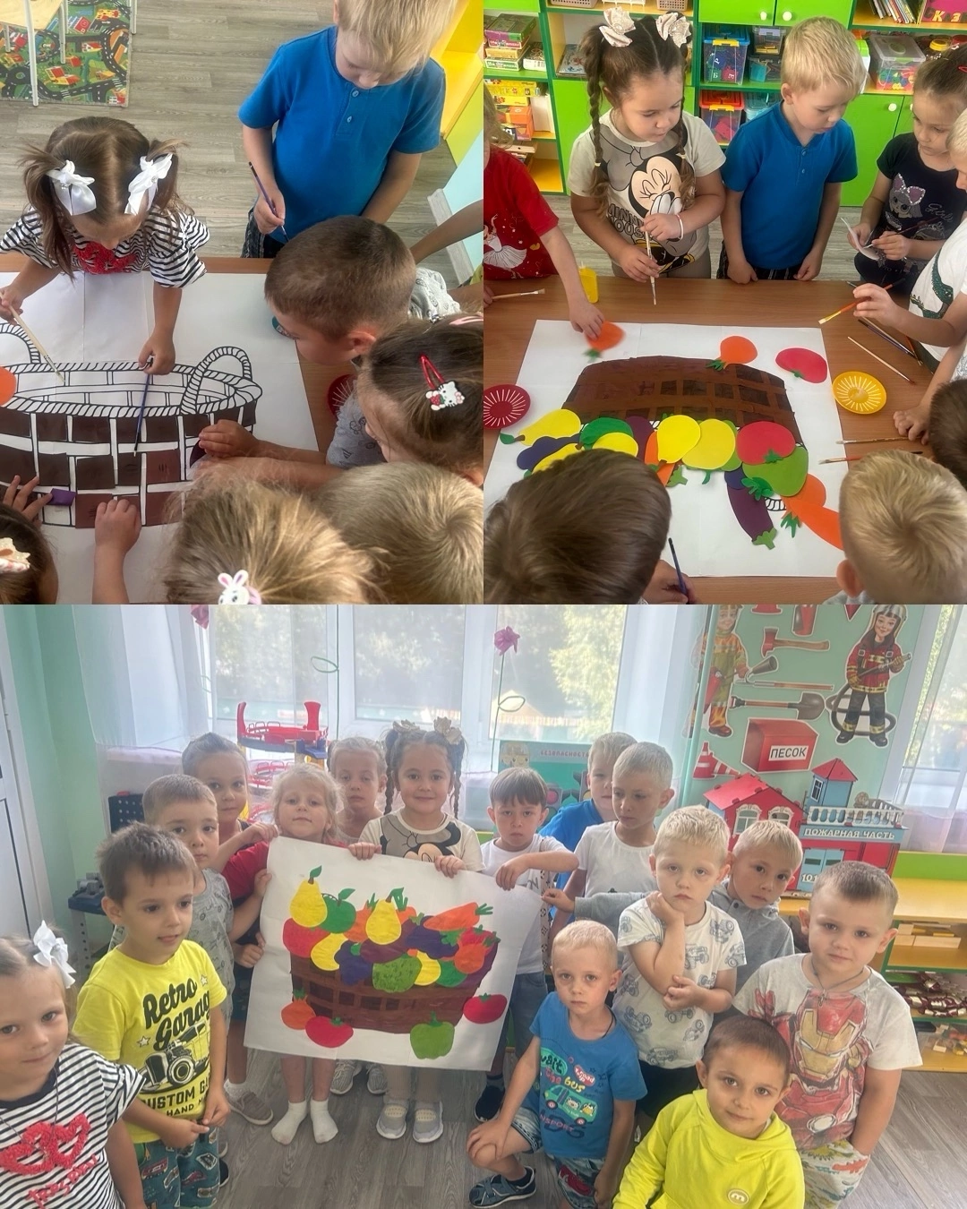 Замечательные работы: «Урожайное лето», «Лесные дары», «Витамины из лета », выставка поделок еще долго будут радовать глаз и напоминать нам об удивительном и теплом времени года - лете, и крайнюю неделю лета, наши «Бабочки» встречают коллективной аппликацией «Корзина с подарками лета».