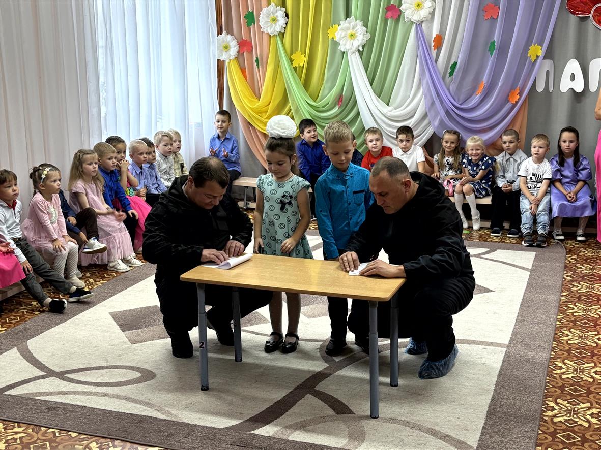 Все присутствующие с интересом слушали рассказ ведущей об истории праздника , вспомнили папины профессии , марки автомобилей , отгадывали загадки .