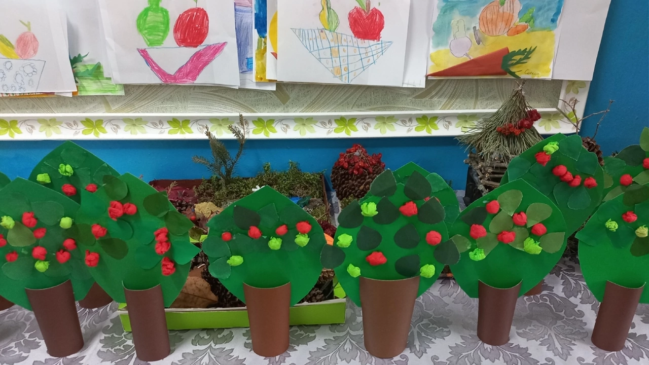 Воспитанники группы компенсирующей направленности с ТНР "Ягодки " в ходе реализации тематической недели "Фрукты ", в очередной раз порадовали нас творческими поделками - "Яблонька ".