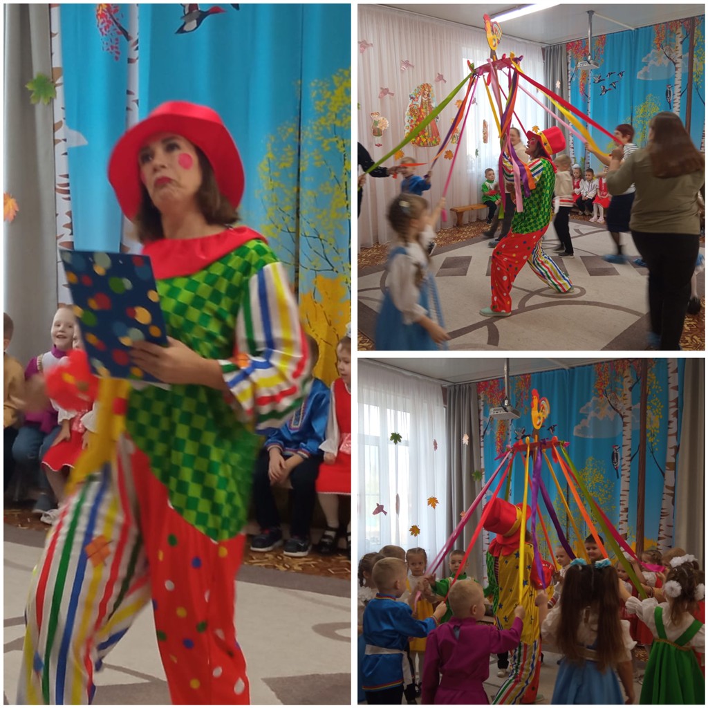 В гости к ребятам приходил весёлый и озорной Скоморох, ребята с ним успели подружиться и покататься на «Весёлой карусели ».