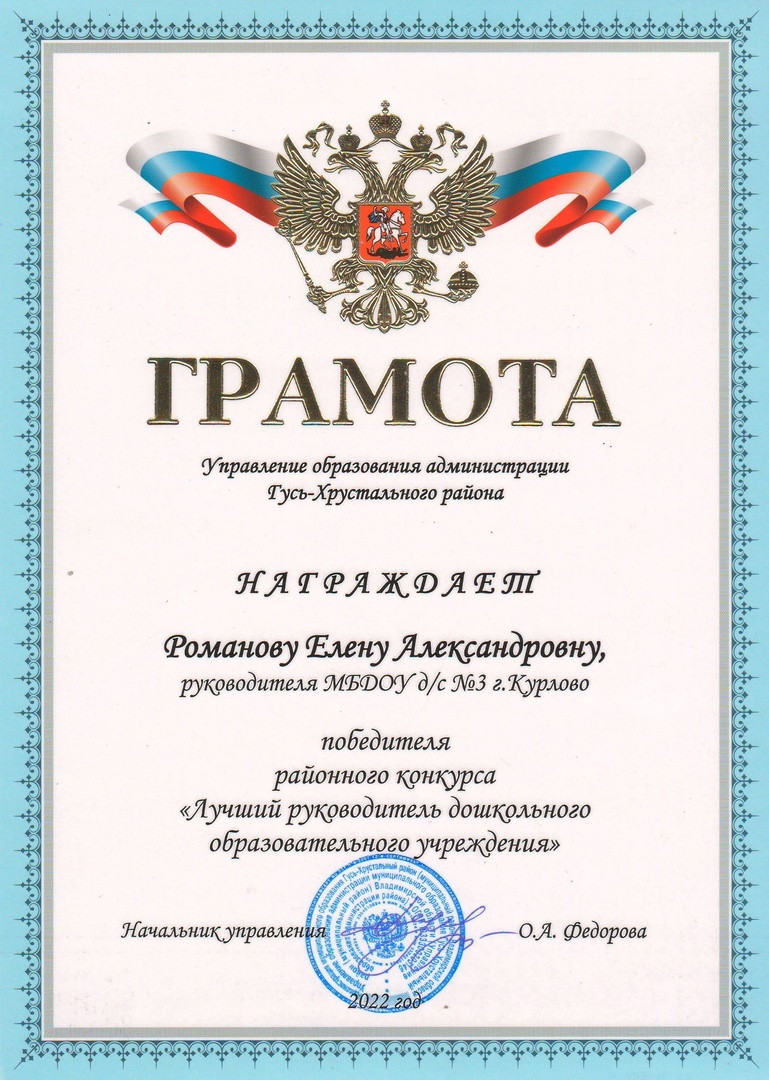 18 ноября 2022 года были объявлены итоги конкурса среди руководителей дошкольных образовательных учреждений Гусь-Хрустального района.
