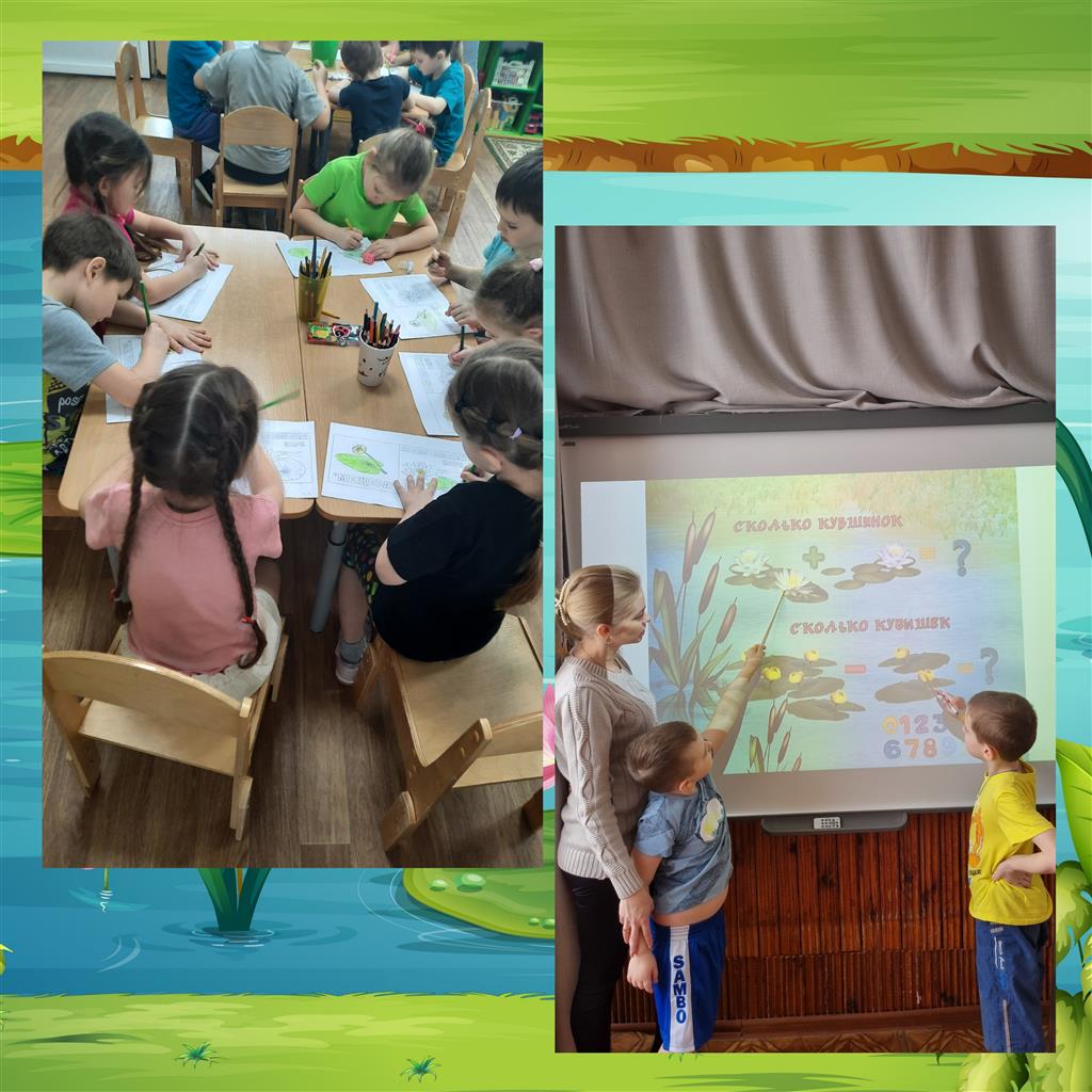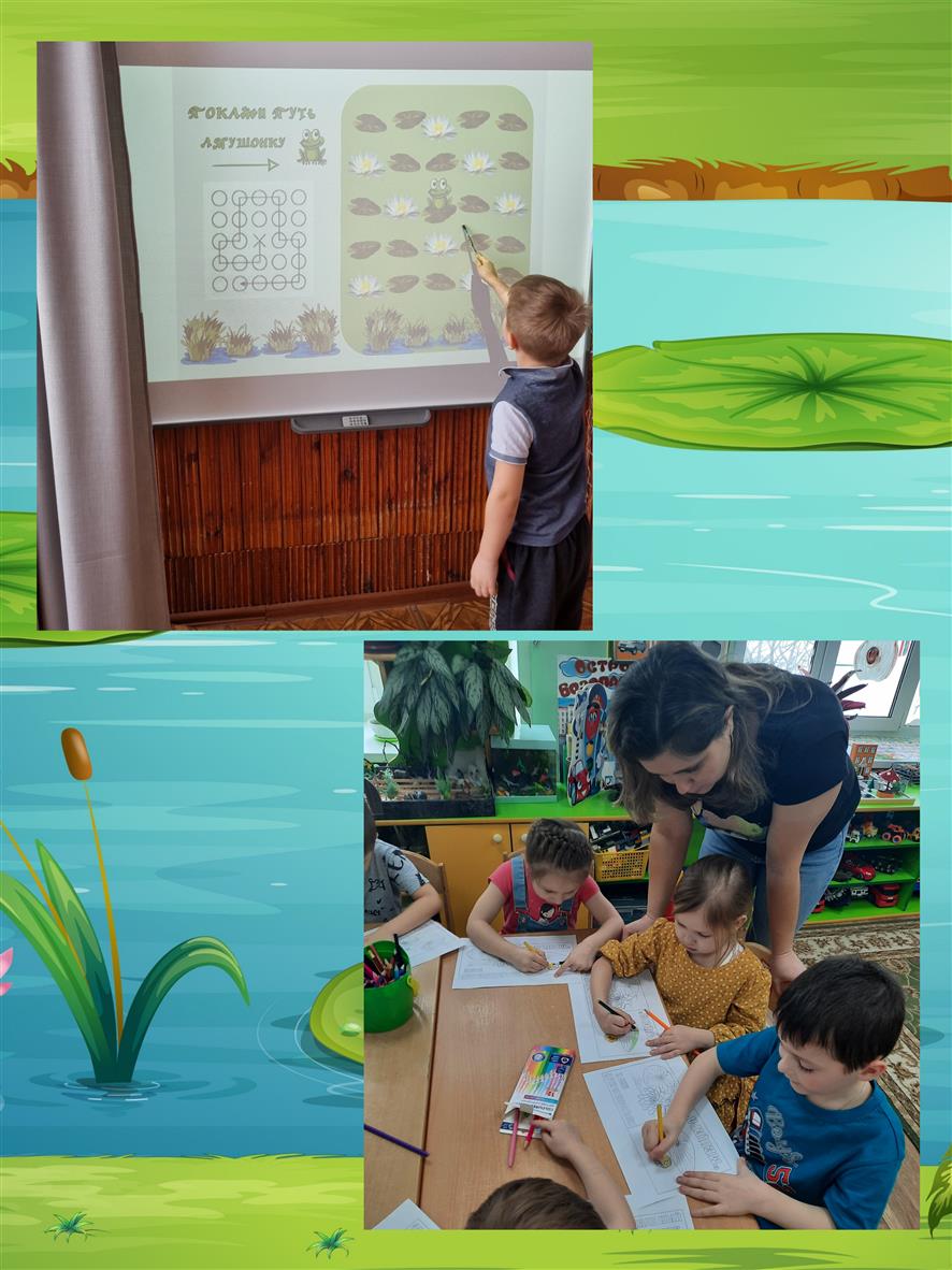 - поучаствовали в заданиях "Покажи путь лягушонка", "Весёлый счёт";
