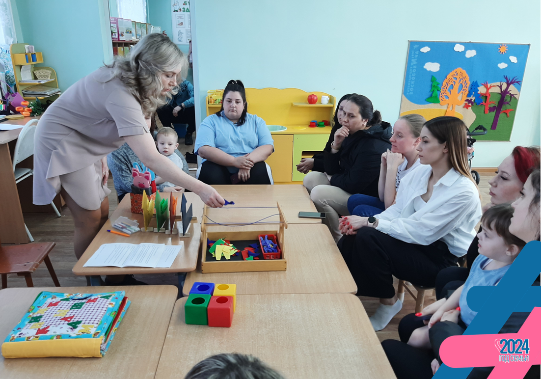 Корчуганова Ольга Алексеевна продемонстрировала игротеку, созданную своими руками. В эти игры ребята группы раннего возраста «Малыши» играют в группе, согласно возрастной особенности детей. Родители играли в игры, выбранные своими ребятишками, а затем, родители самостоятельно изготовили игру «Сортер с прищепками».