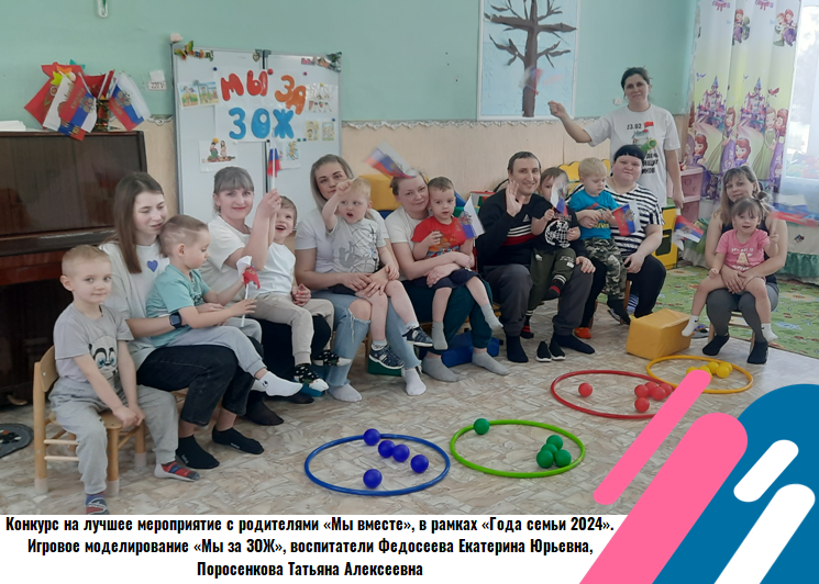В рамках реализации годового плана МБДОУ д/с №3 г. Курлово, с целью внедрения современных форм организации взаимодействия с родителями, способствующих созданию образовательных отношений и развитию педагогической компетентности родителей в соответствии с ФОП и ФГОС ДО, в период с 04.03.2024 г. по 22.03.2024 г состоялся конкурс на лучшее мероприятие с родителями «Мы вместе!».