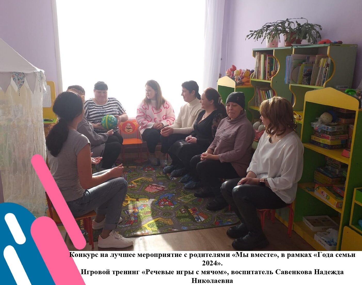 В рамках реализации годового плана МБДОУ д/с №3 г. Курлово, с целью внедрения современных форм организации взаимодействия с родителями, способствующих созданию образовательных отношений и развитию педагогической компетентности родителей в соответствии с ФОП и ФГОС ДО, в период с 04.03.2024 г. по 22.03.2024 г состоялся конкурс на лучшее мероприятие с родителями «Мы вместе».