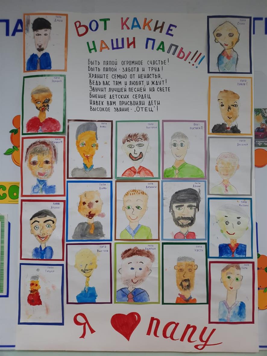 В преддверии праздника «День отца » воспитанники подготовительной группы «Апельсинки» нарисовали портреты своих пап и организовали выставку "Вот какие наши папы !!!".