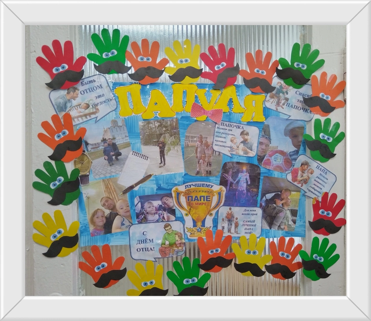 Стенгазету «Лучшему в мире папе!» и замечательную открытку - ладошку «Папа я тебя люблю».
