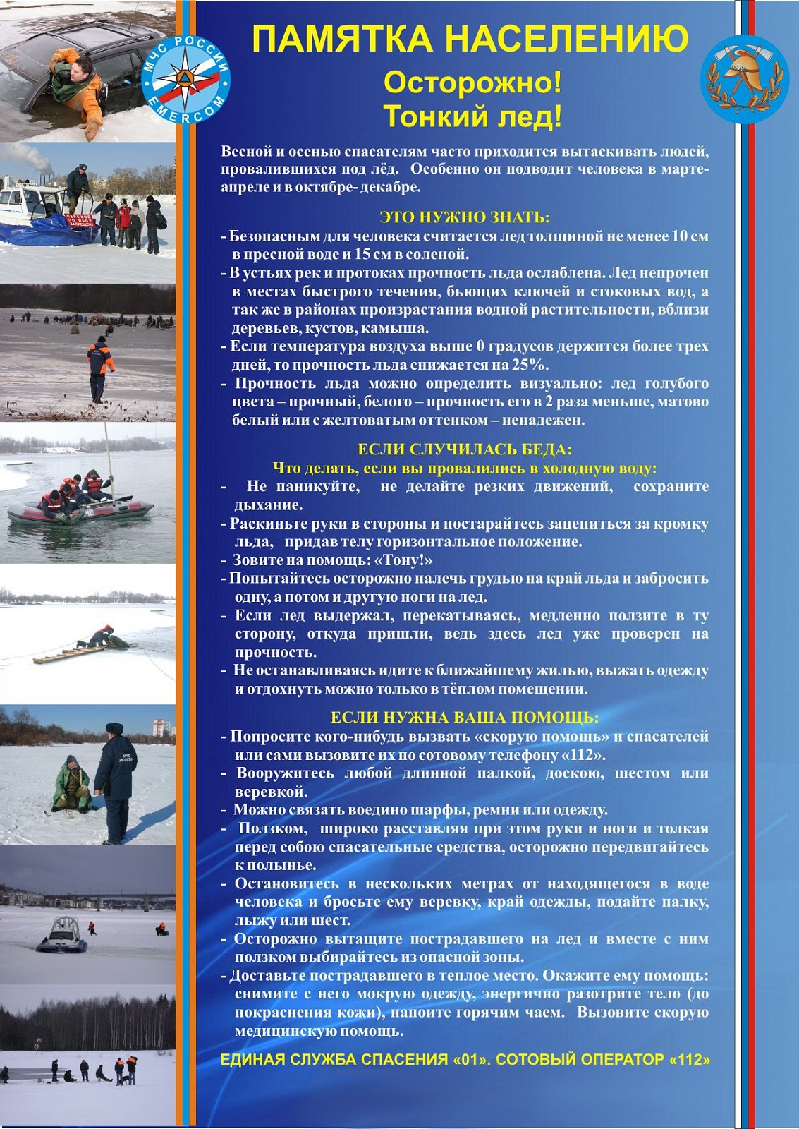 - помните об условиях образования и свойствах льда в различные периоды зимы, различать приметы опасного льда, знать меры предосторожности и постоянно их соблюдать;