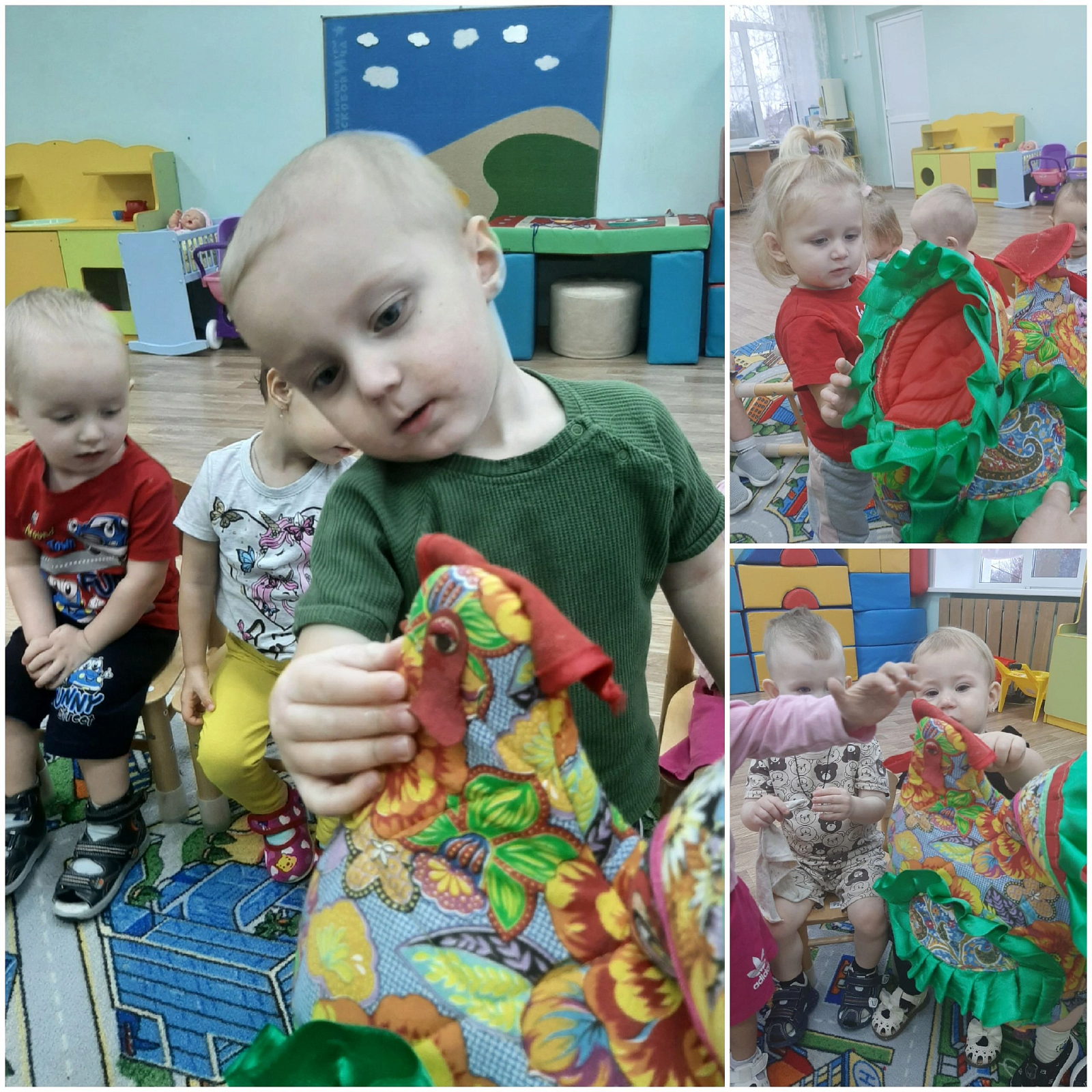 Слушали сказку "Курочка Ряба", потешку "Курочка-Рябушка".