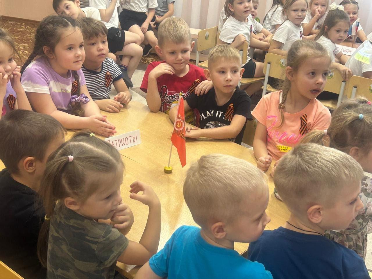 Участники викторины разделились на две команды: команда "Россия" ( группа "Апельсинки"), команда "Патриоты " (группа "Бабочки").