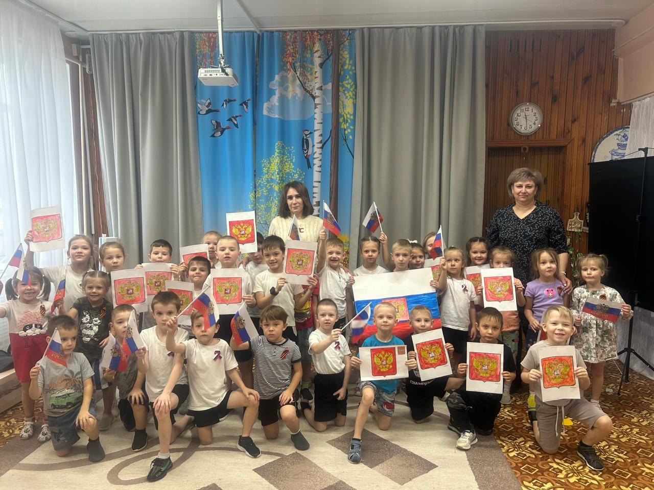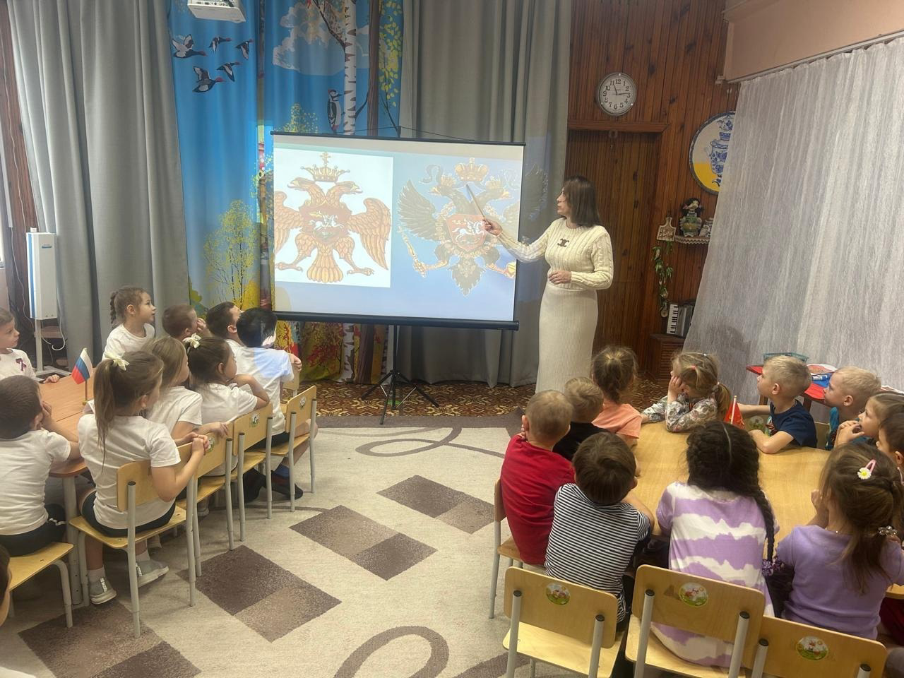 Детям было рассказано об истории Герба России, его символическом значении.