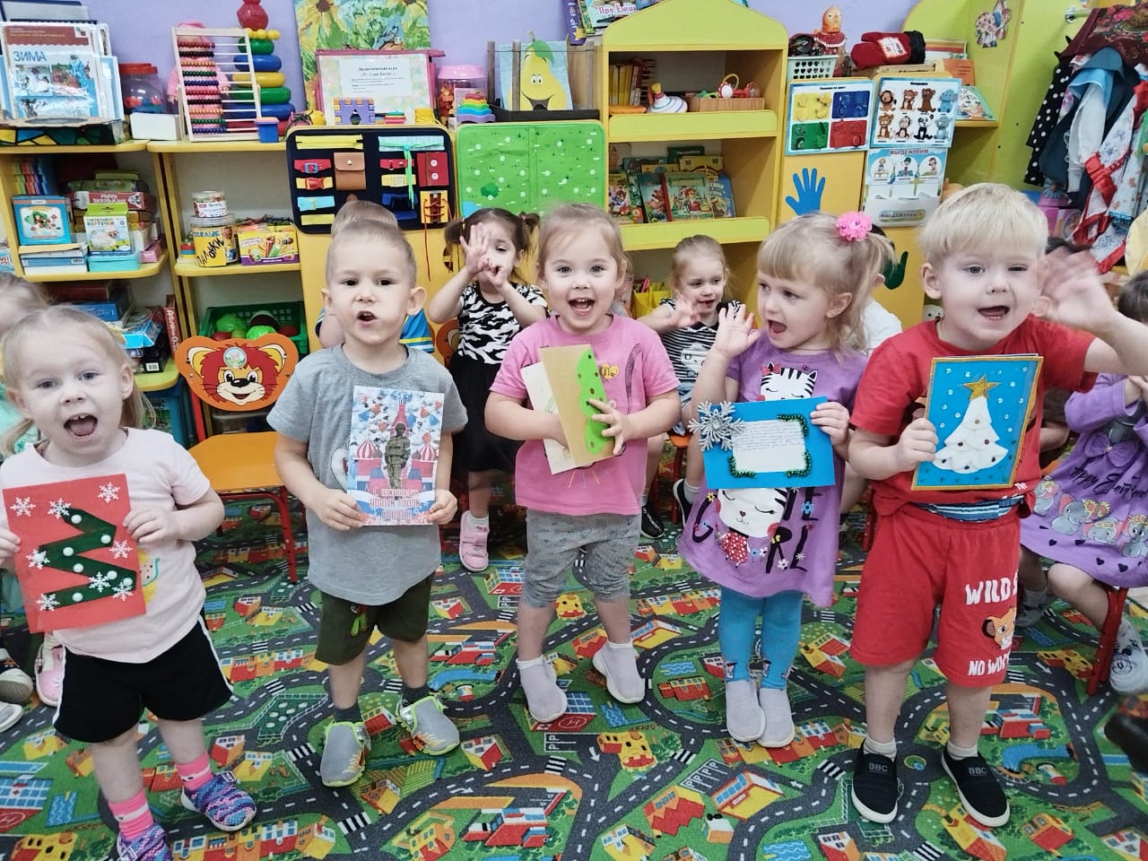 Воспитанники МБДОУ д/с №3 города Курлово совместно с родителями смастерили новогодние открытки для участников СВО .