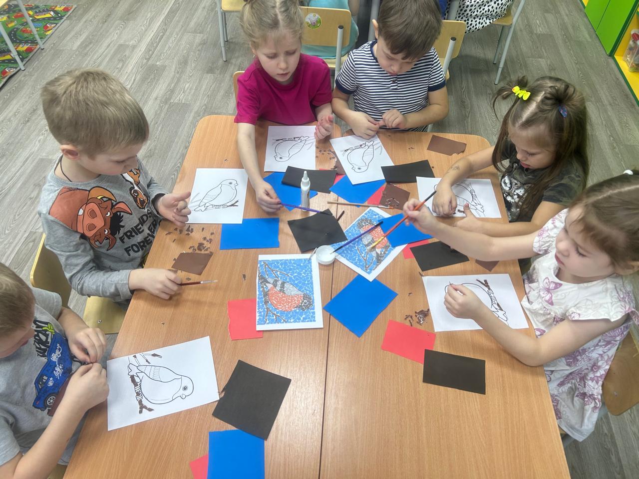 С детьми проведены интересные беседы о жизни и повадках птиц, откуда появилось название, послушали стихи , рассмотрели иллюстрации, отгадывали загадки. А потом каждый ребенок смастерил своего снегиря: выполнили аппликацию «Снегири на ветке» и обрывную аппликацию «Снегирь», а так же раскрашивали пернатых друзей .