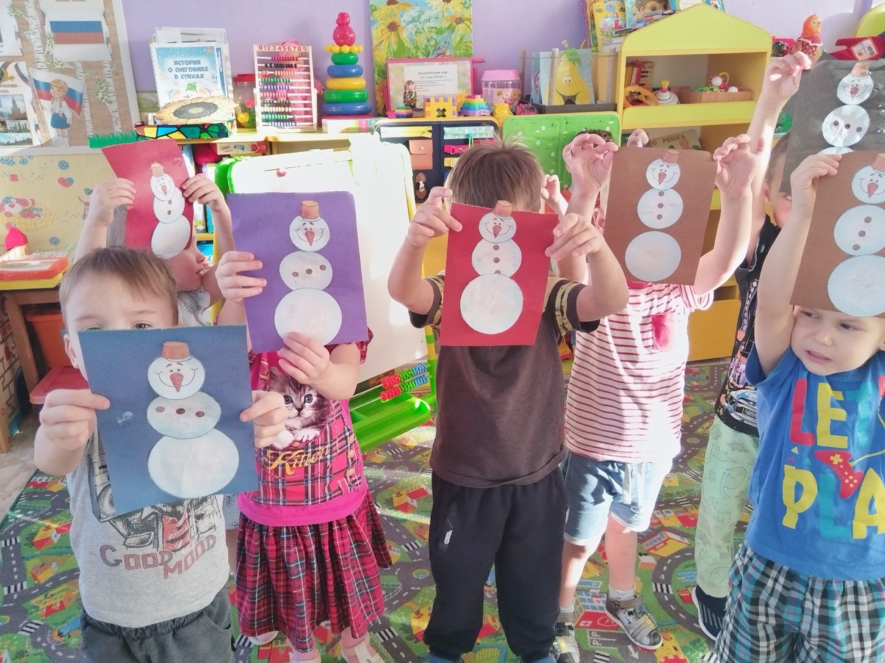 -Ребята выполнили аппликацию: "Снеговичок ".
