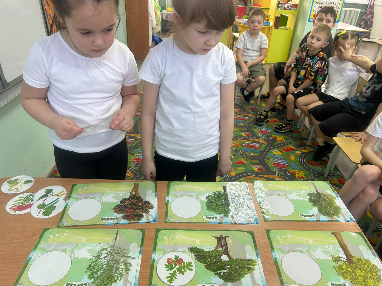 Для самостоятельной деятельности детей были предложены настольно-печатные игры «Как зовут тебя, деревце?», «С какого дерева листок?».