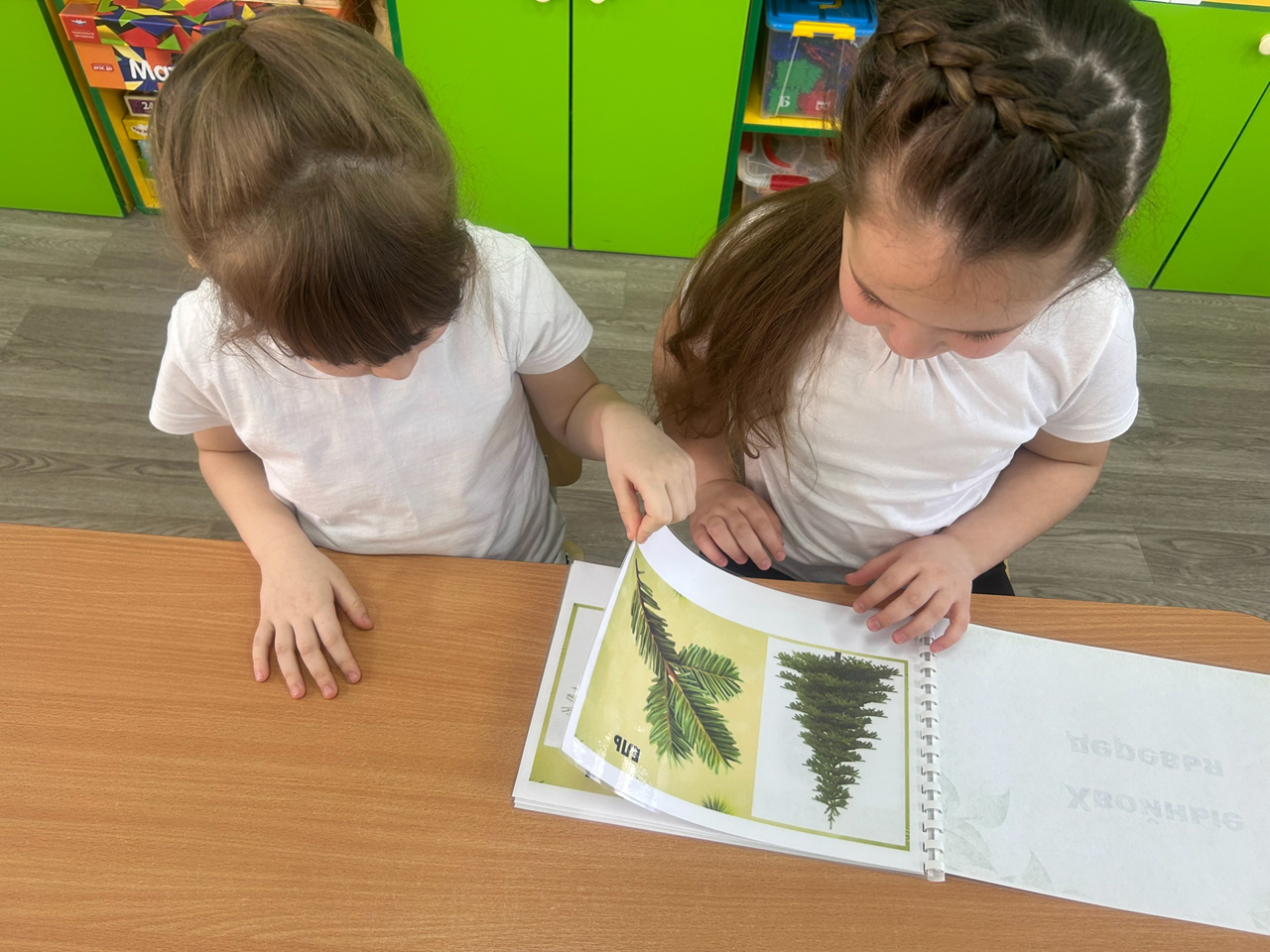 Рассматривали альбомы «Лиственные деревья» и «Хвойные деревья ».
