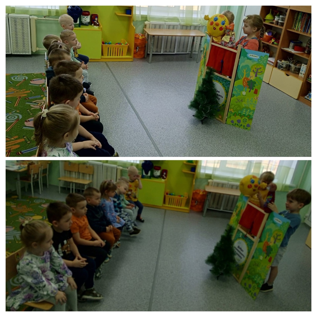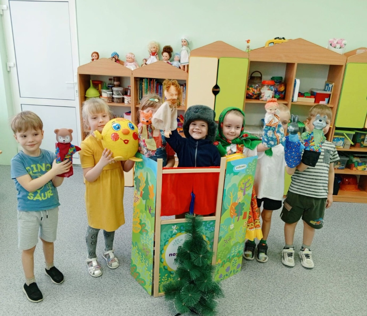 Ярким финалом тематического дня был показ кукольного театра по сказке «Колобок» для воспитанников первой младшей группы «Зайчики».