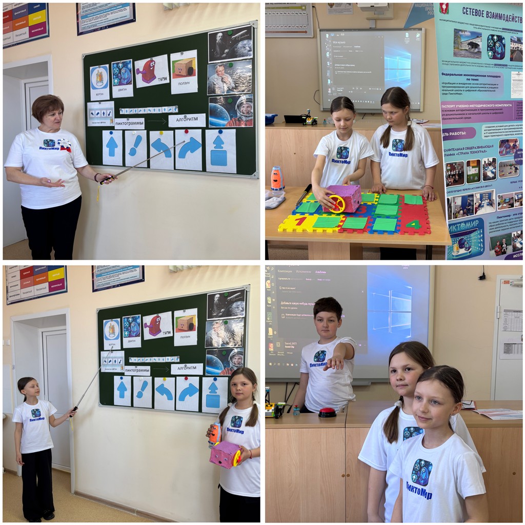 Воспитатель Солдатенкова Марина Викторовна и учитель Коробова Лариса Валерьевна, совместно с воспитанниками провели мастер-класс «Реализация программы федеральной инновационной площадки по внедрению основ алгоритмизации и программирования для дошкольников и младших школьников в цифровой образовательной среде «Пиктомир».