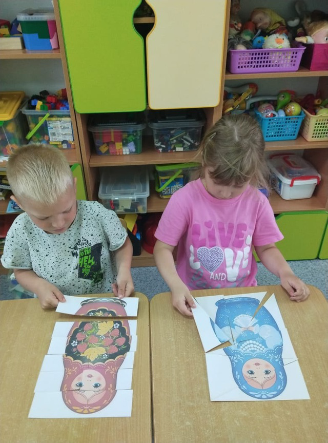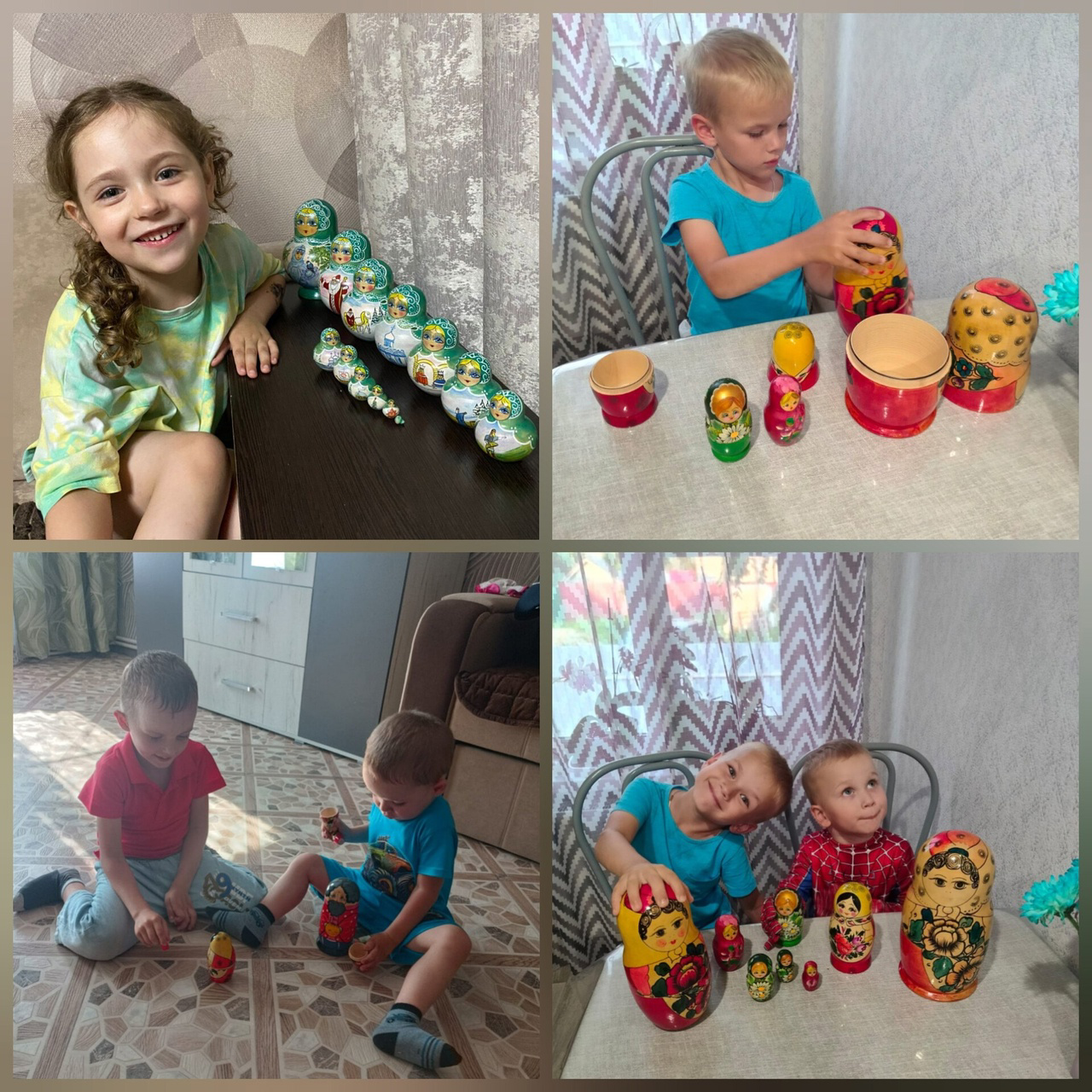 Участвовали в дидактических играх: «Расставь матрёшек по росту», «Разложи и собери матрёшек», «Мемо-матрёшки (найди пару)»;