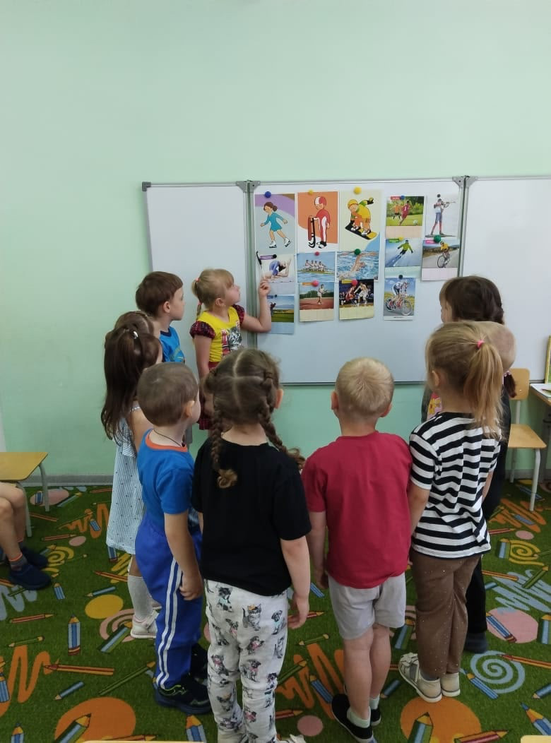 Познавательная часть мероприятия началась с увлекательного рассказа воспитателя Татьяны Алексеевны о богатой истории Олимпийских игр . Дети с большим интересом рассматривали красочные сюжетные картинки , знакомясь с различными видами летнего спорта и традициями олимпийского движения.