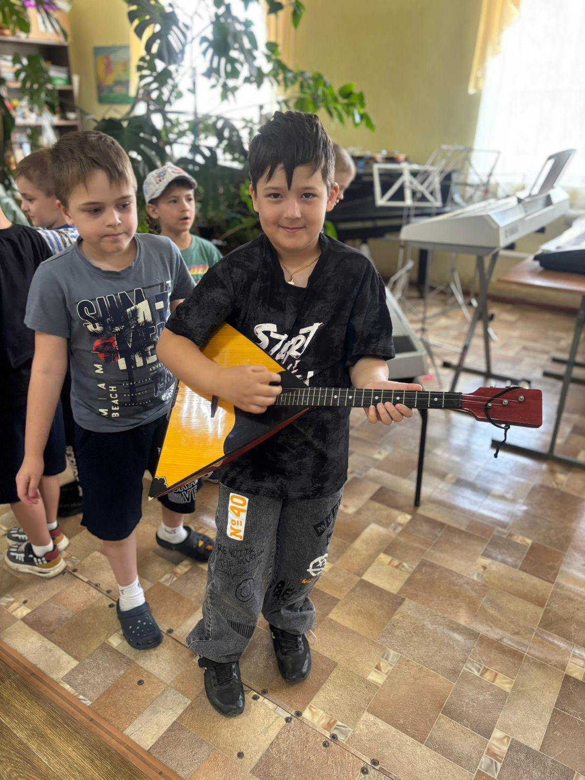 Учитель - логопед Никонова И.Н. организовала экскурсию в музыкальную школу. Дети познакомились с миром разных музыкальных инструментов: флейта, саксофон, балалайка и другие. Послушали выступление воспитанников музыкальной школы. В сопровождение педагогов по музыке попробовали играть самостоятельно и дружным оркестром на разных музыкальных инструментах.