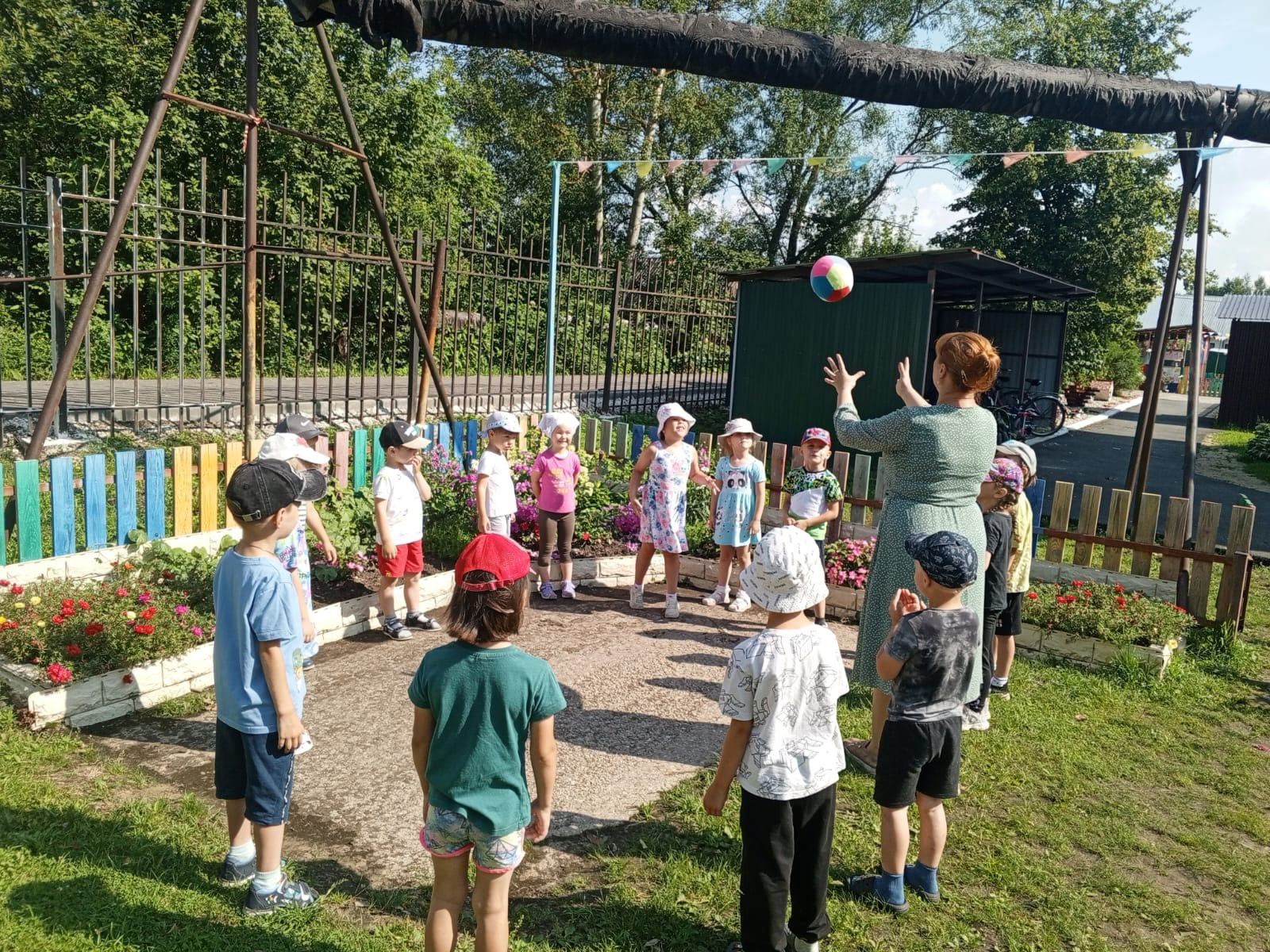 Играли в подвижную игру с мячом «Земля, вода, огонь, воздух».