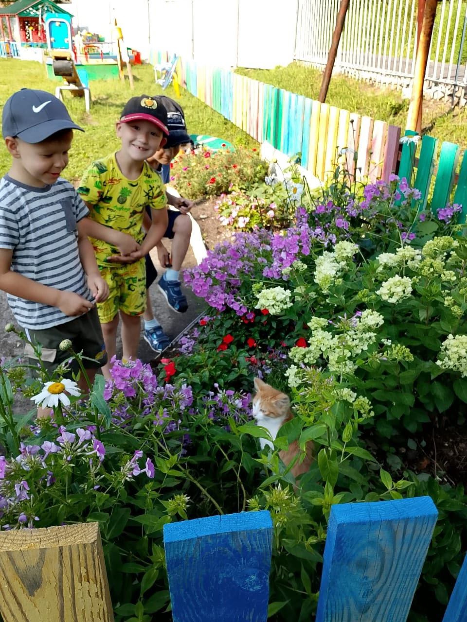 На прогулке «Почемучки» наблюдали за миром растений и насекомых, за цветами на клумбах и любовались их красотой. Рассматривали кустарники и деревья на территории детского сада, вспомнив их строение и поиграв в игру: «Узнай растения по листу».