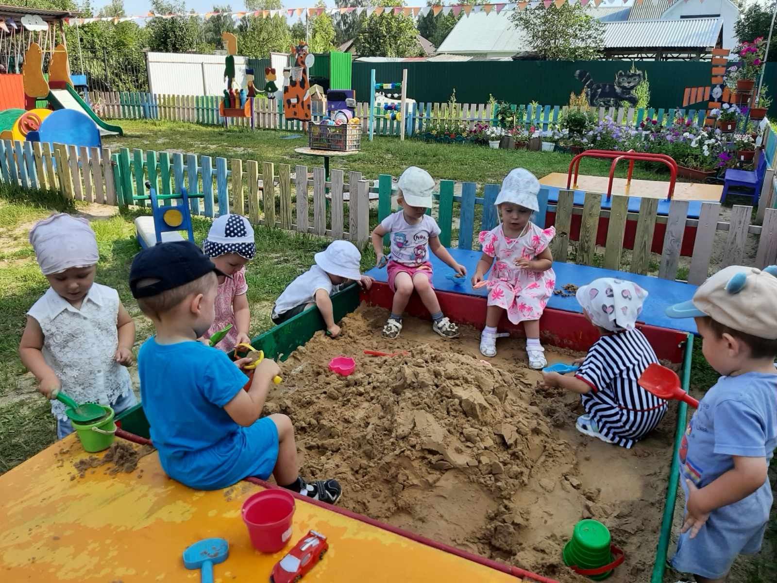 Увлечённо делали куличики и строили домики в песочнице.