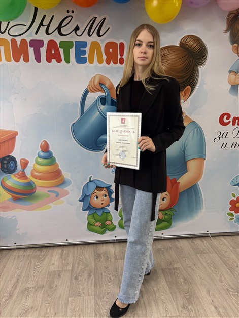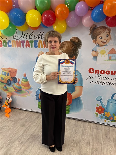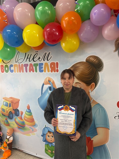 Старший воспитатель Ефремова Мария Андреевна была отмечена благодарностью Администрации муниципального образования Гусь-Хрустального района Владимирской области за добросовестный труд в сфере образования.