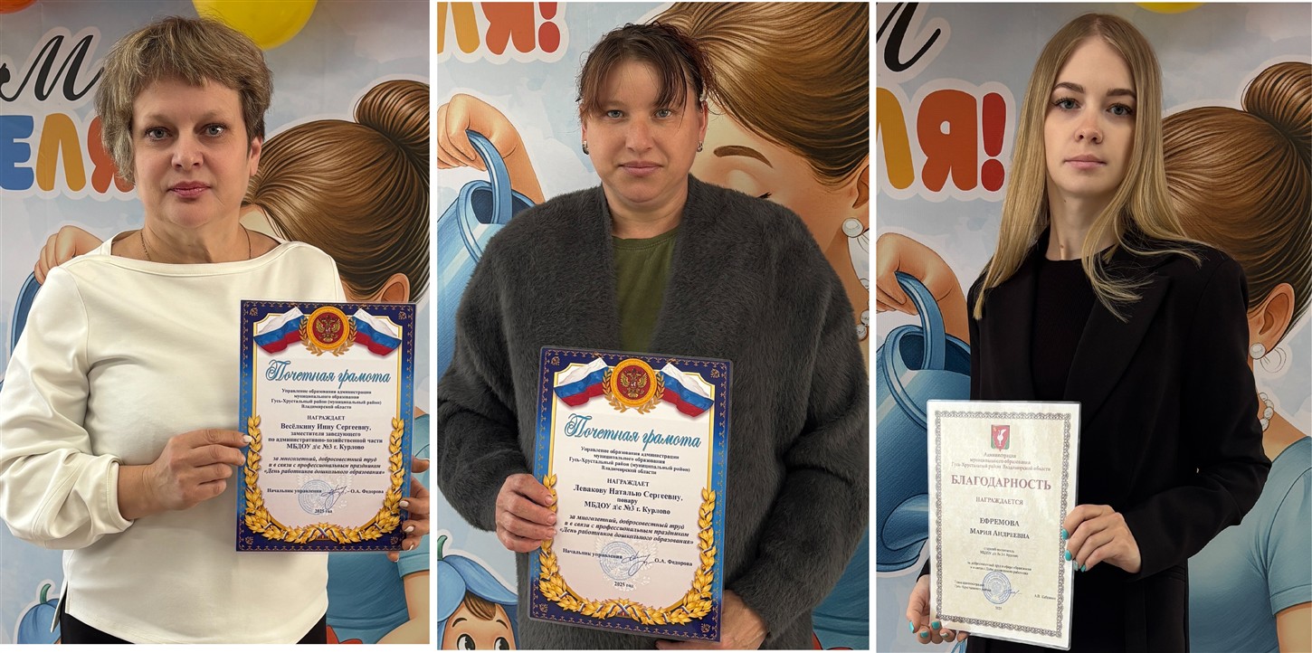 Особого признания удостоились и другие сотрудники детского сада. Почётной грамотой Управления образования администрации муниципального образования Гусь-Хрустального района были награждены: