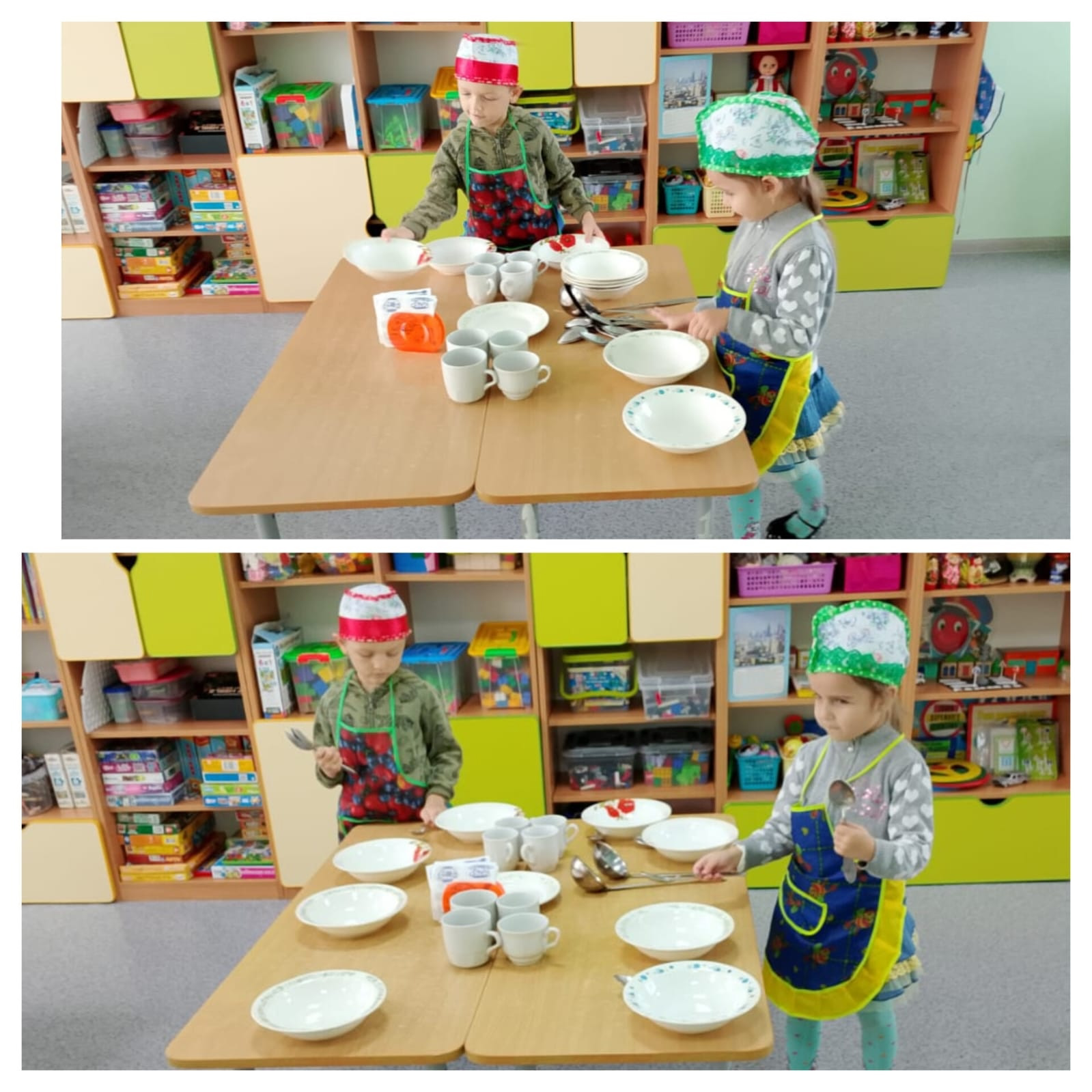 Перед обедом ребята выполняют трудовое поручение - сервируют стол к обеду.