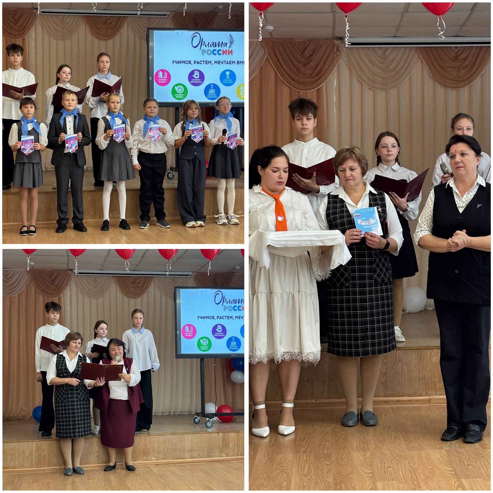 - произнесение клятвы , в которой ребята пообещали: горячо любить Родину, прилежно учиться, творить добрые дела, держать слово, ценить дружбу, проявлять заботу и поступать по совести.