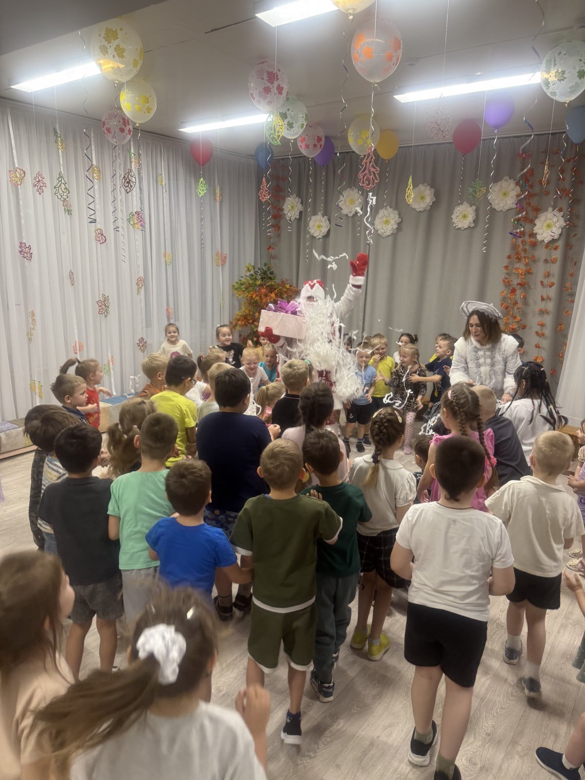 С самого начала мероприятия в зале царила по‑настоящему сказочная атмосфера. Воспитатели подготовили для ребят увлекательную программу, чтобы каждый смог от души поздравить зимнего волшебника.